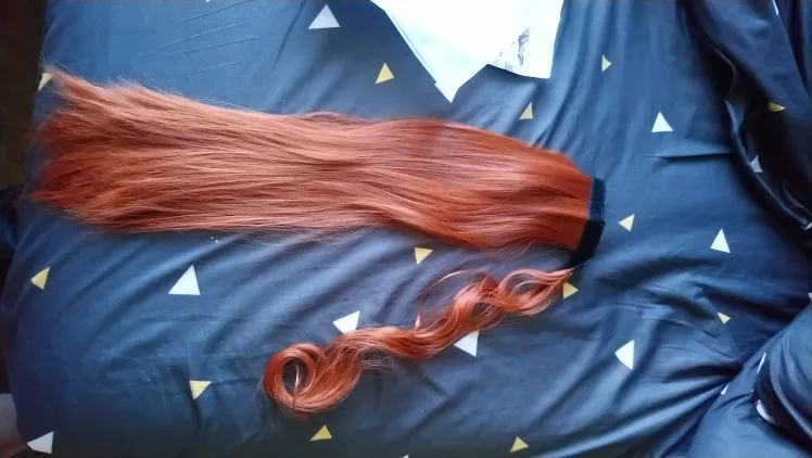 Пришла посылка очень быстро,цвет подошёл отлично.удобное крепление,в процессе ношения ничего не сползает ,смотрится естественно,я очень довольна.Р.S после пару недель,начинает немного путаться ,но это не проблема.Советую этого продавца!