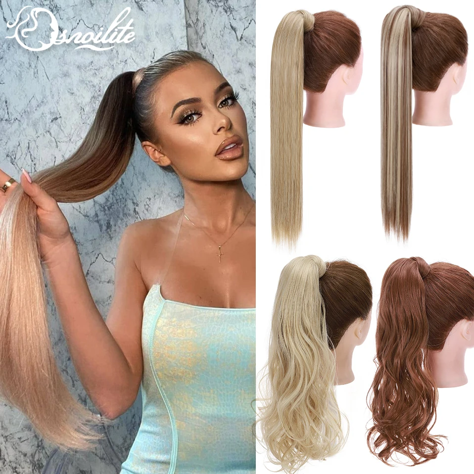 S-noilite синтетический длинный волнистый хвост с зажимом для волос 23 дюйма, накладные волосы, шиньон с заколками, Женский удлинитель волос с конским хвостом