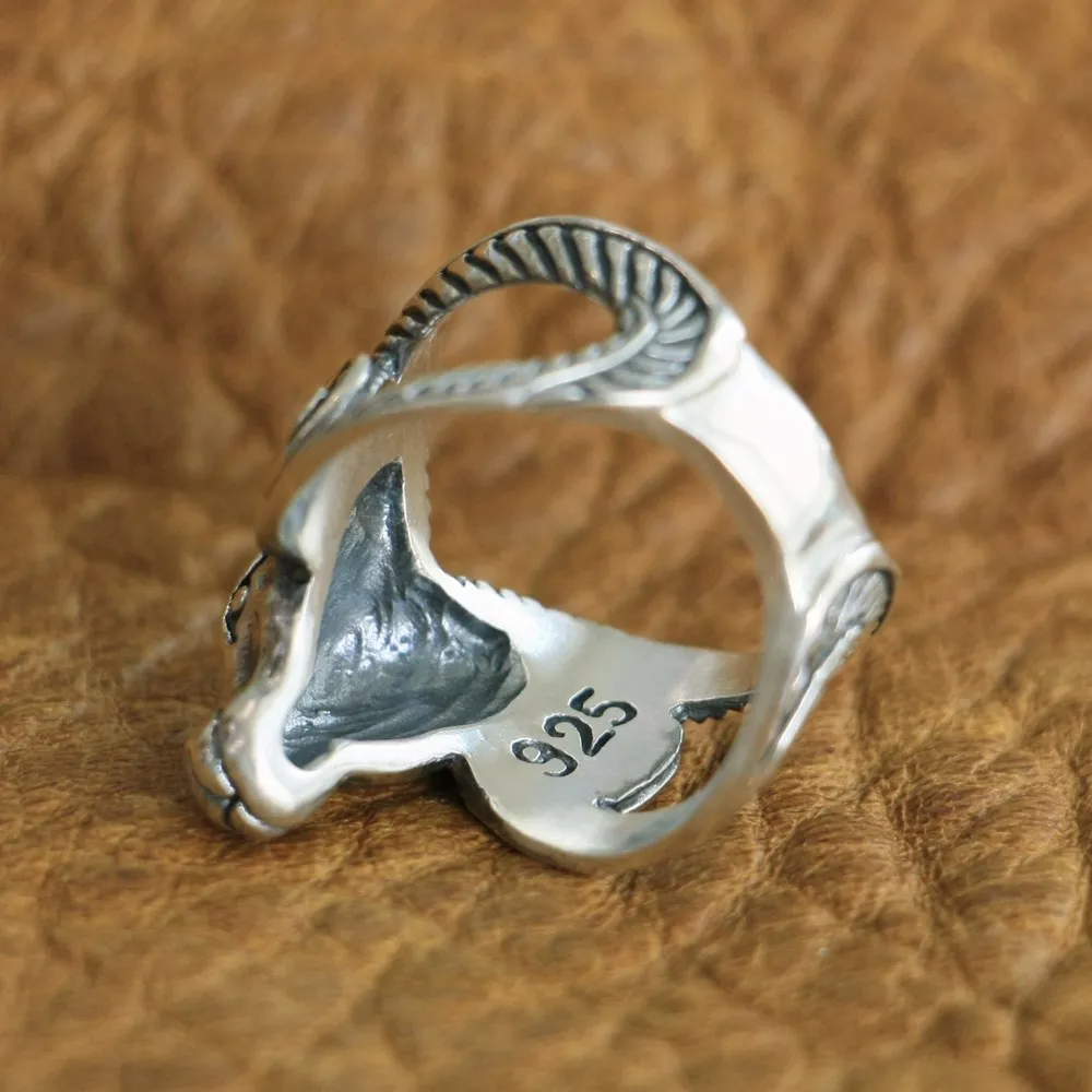 Мужское байкерское кольцо LINSION, серебряное кольцо с длинным рогом и черепом, Размер 7-15, TA123