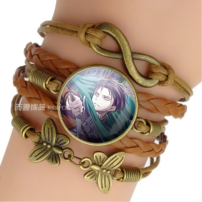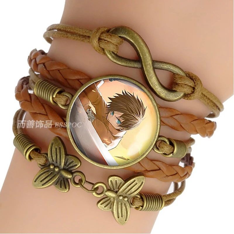 Модный японский аниме Бронзовый кожаный плетеный браслет стеклянный...
