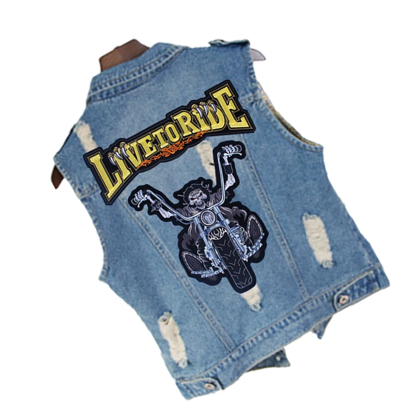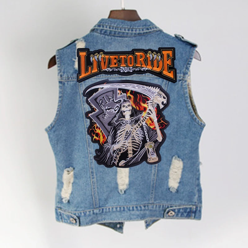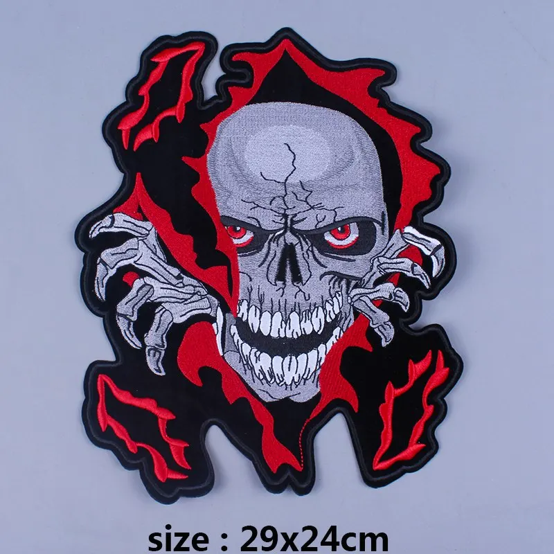 Байкерские нашивки с черепом, большие вышитые нашивки на одежду, на...