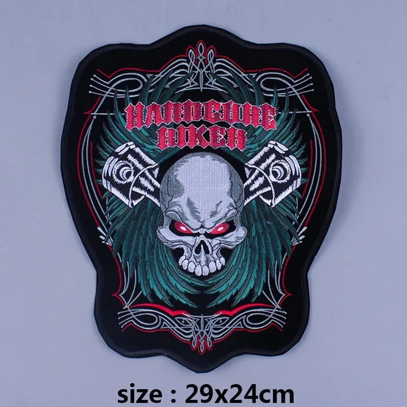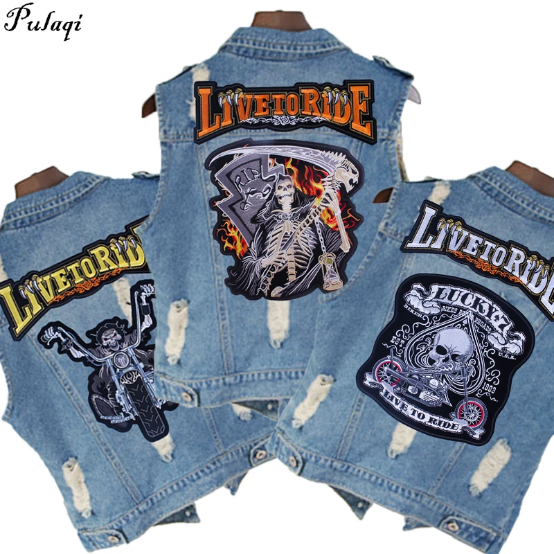 Большие байкерские нашивки Pulaqi для одежды, нашивки с утюгом, большие значки с черепом в стиле панк, красивые мотоциклетные вышитые нашивки, аксессуары для пальто