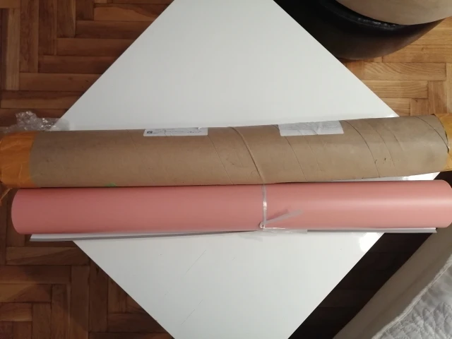 отличные фоны, водостойкий пластик, электризуются немного. Розовый немного уходит в персиковый по цвету, но цвет классный. Были упакованы в картонный тубус. Тубус с торцов помялся при транспортировки, но фоны не пострадали. Доставка в Беларусь чуть больше 1,5 месяцев.