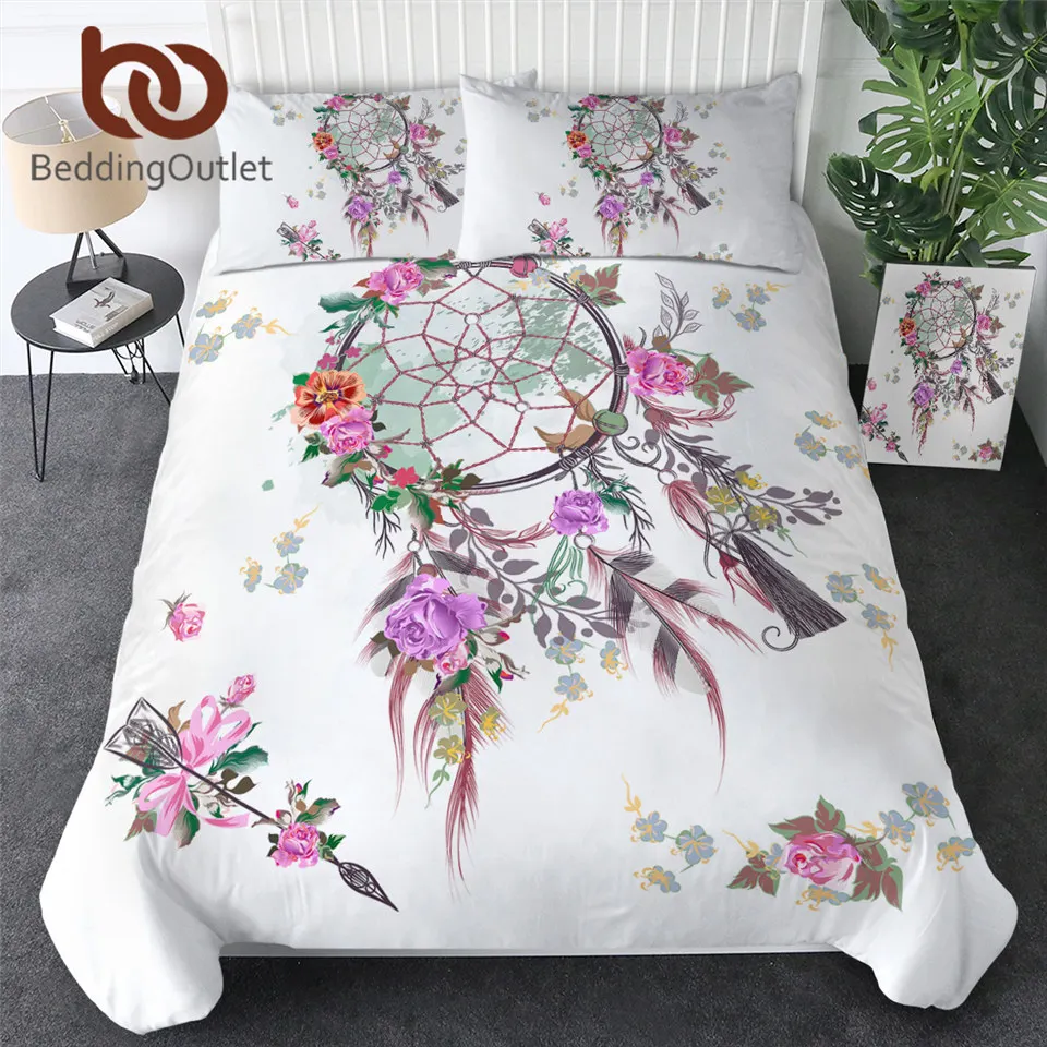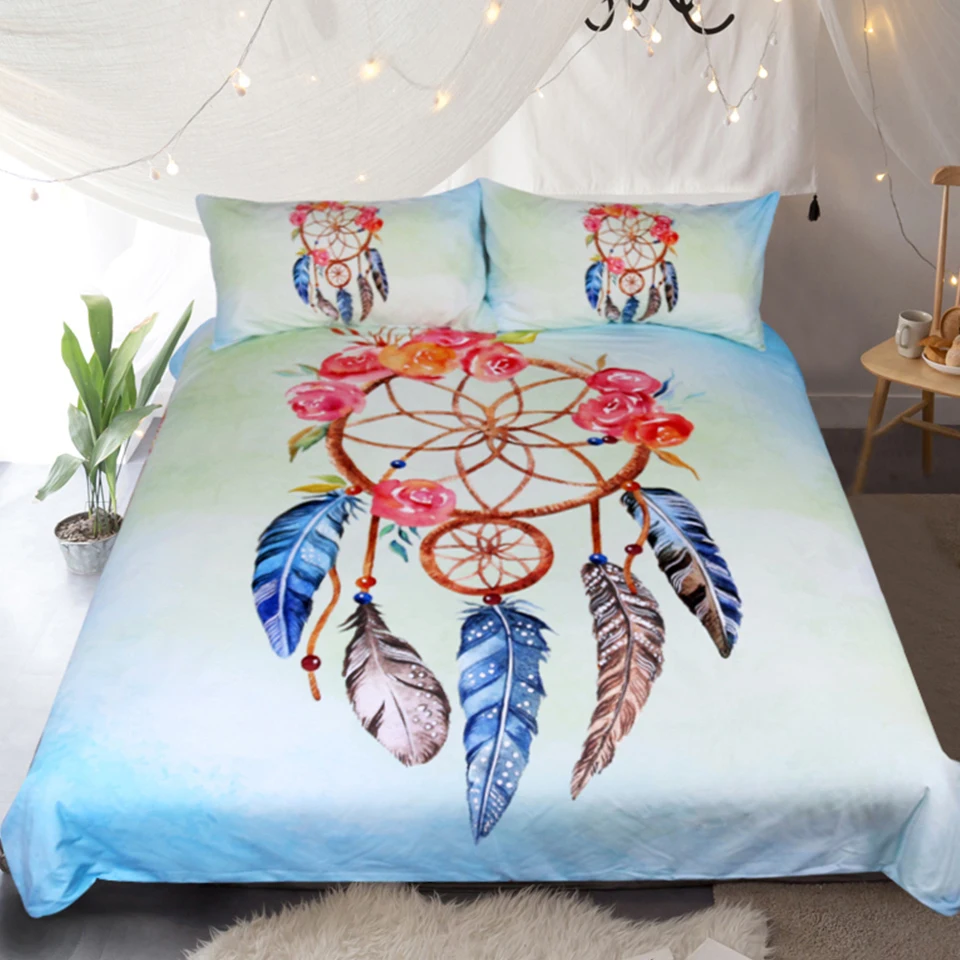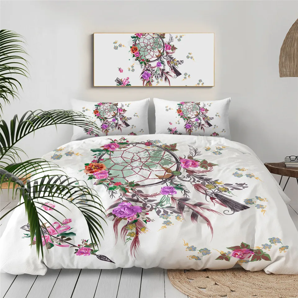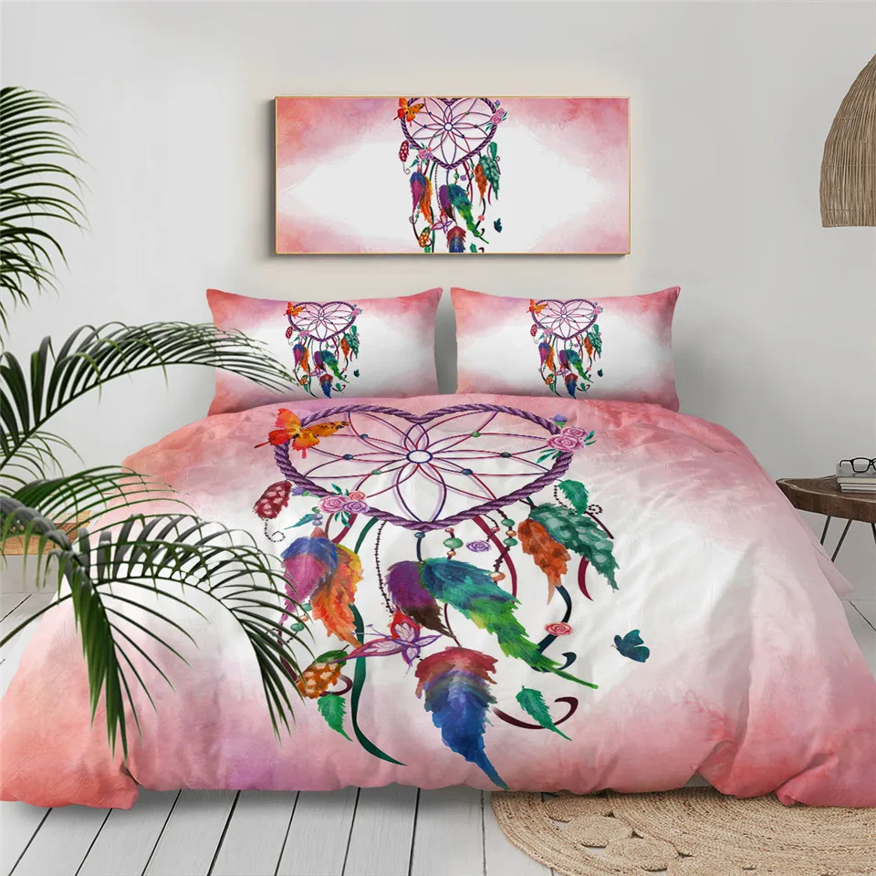 Комплект постельного белья, с рисунком Ловец снов, с цветочным рисунком, в богемном стиле, весенний, розовый, для девочек, домашний текстиль, 3 шт.