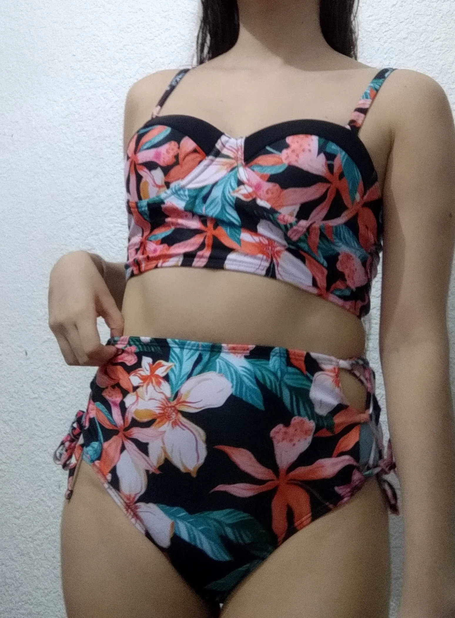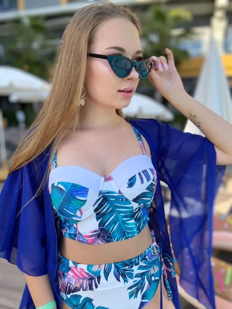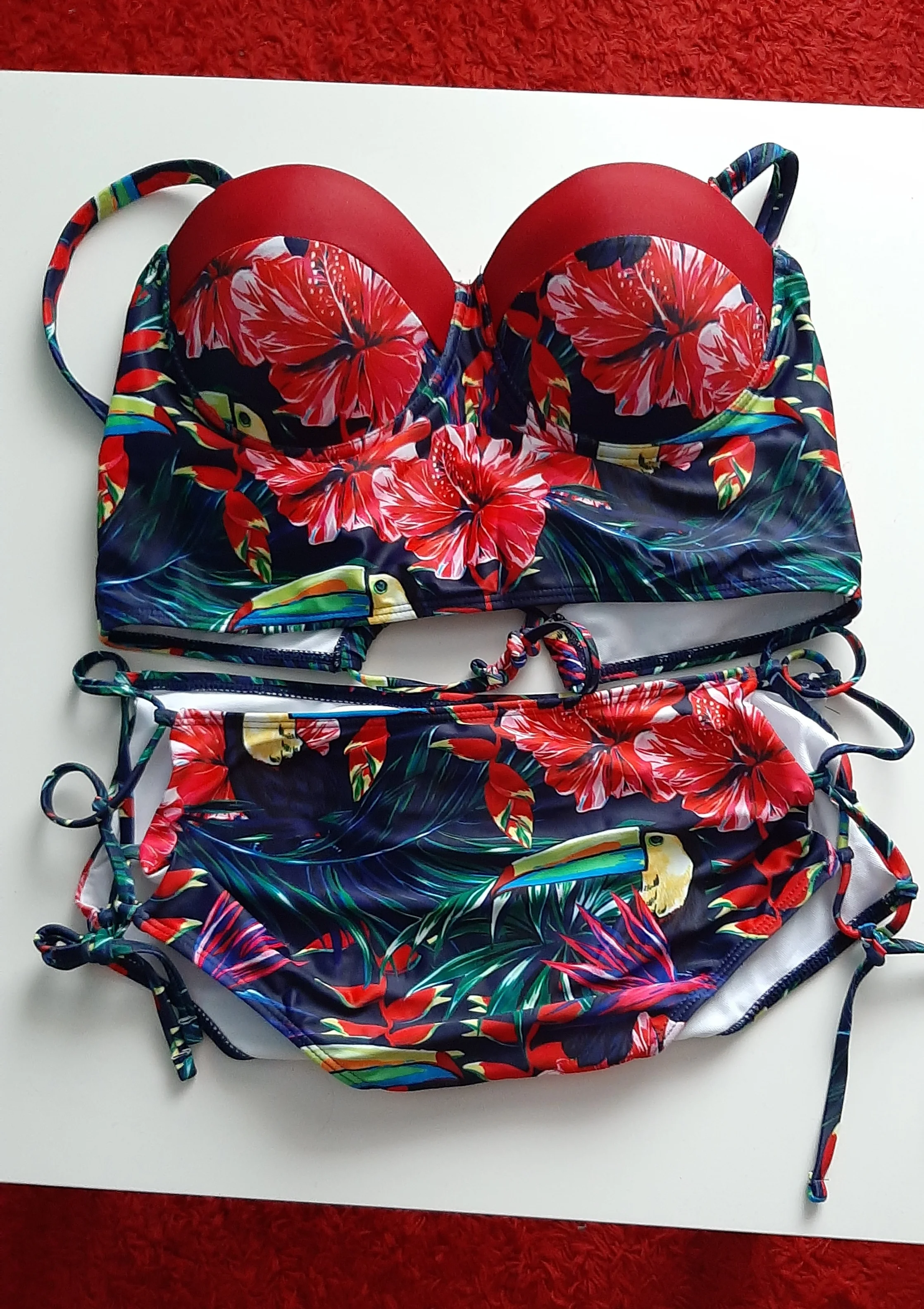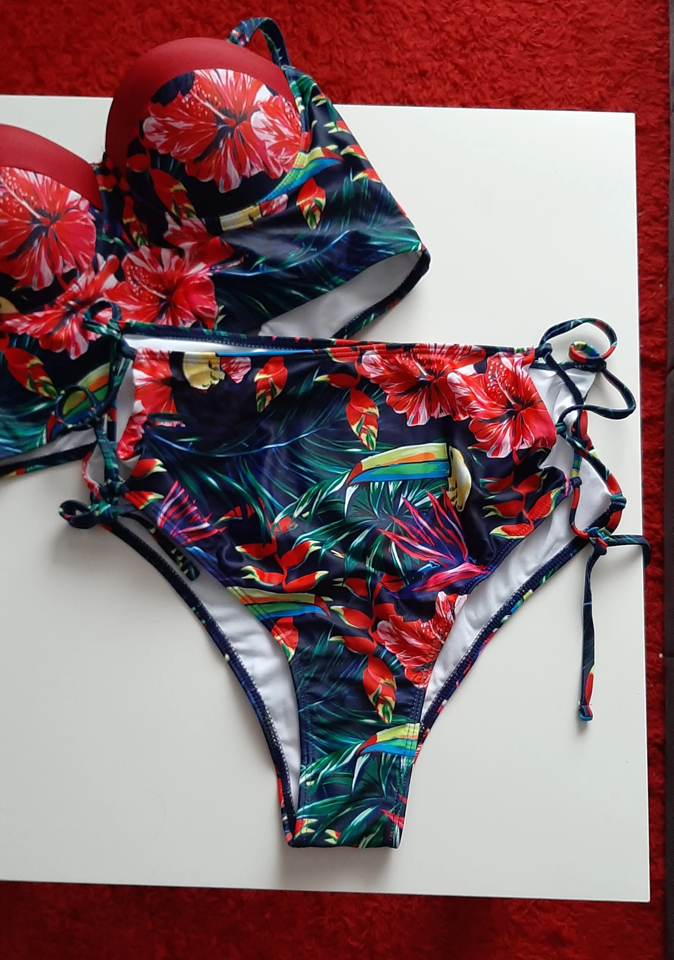 Отличный купальник , но имейте ввиду в лифе Пуш-ап и на мои ОГ 100 оказался мал , запотев ОГ 86 сел отлично и увеличил даже грудь визуально . А вот бояться что будет мал сам бикини не стоит так как по бокам регулируется завязками и на спинке тоже .