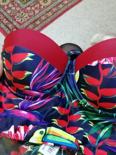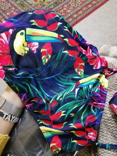 Купальник просто супер! Сидит идеально на девочках с хорошими формами :) для худеньких не уверена, что подойдёт, но можно отрегулировать шнуровкой. Не линяет после моря и стирки, рисунок яркий и чёткий как на фото. Однозначно рекомендую!