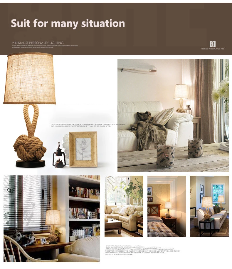 Настольная лампа в американском стиле ретро, креативная веревка, ручная прикроватная лампа для спальни, учебы, офиса, кофейни, бара, освещение