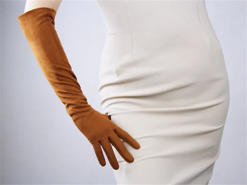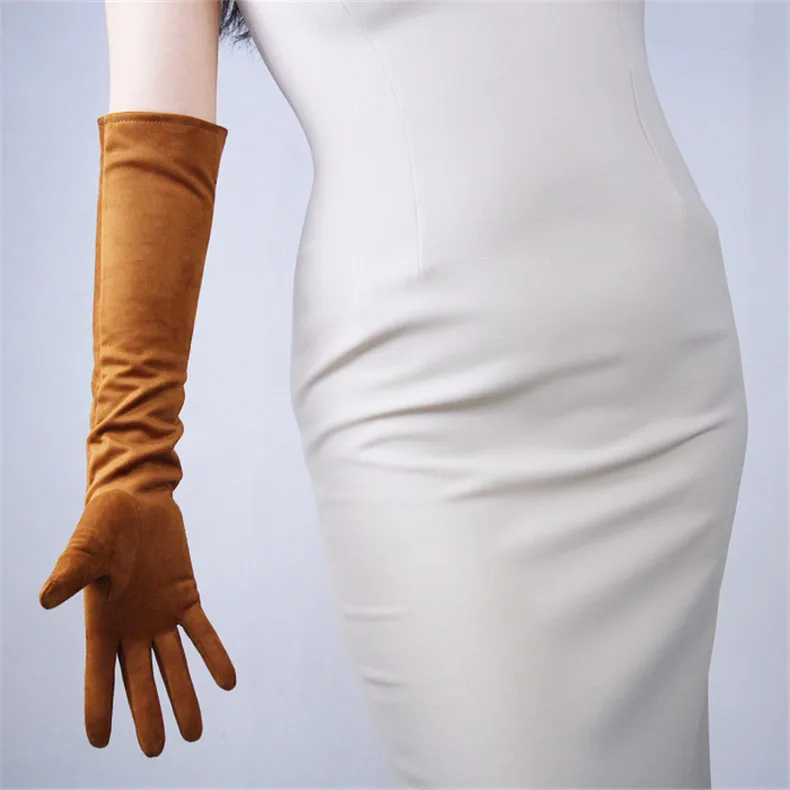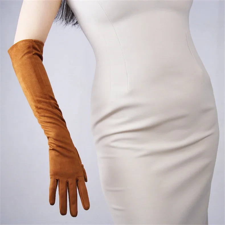 Длинные замшевые перчатки, 50 см, Карамельно-коричневые, из Матовый Scrub замши, с искусственной кожей, длинные, женские перчатки, бесплатная доставка WJP21