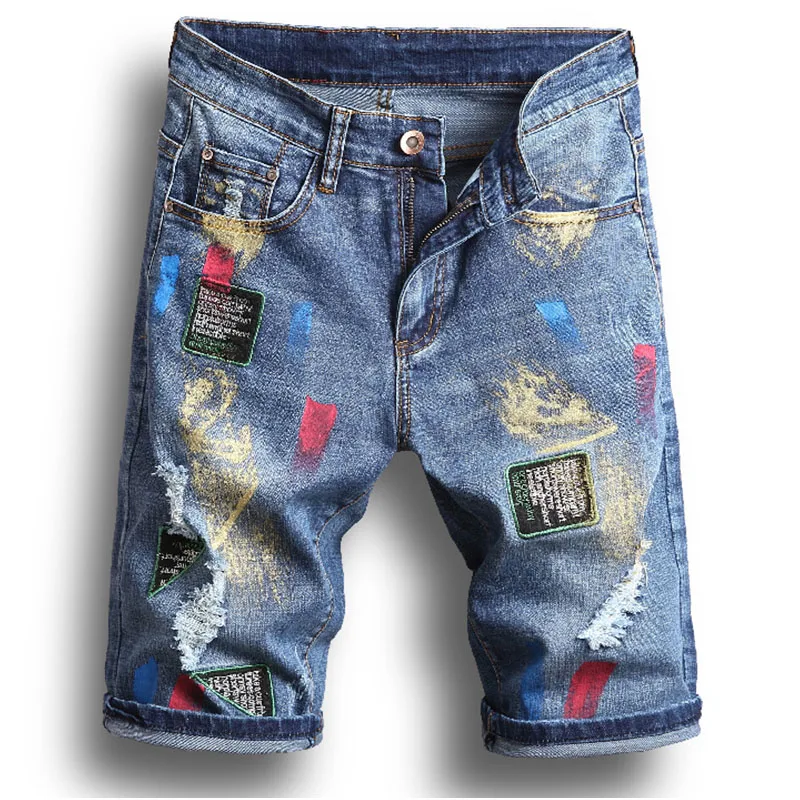 Женские винтажные джинсовые шорты, свободные прямые шорты до колен с разноцветным принтом, шорты-бермуды, Y2k, лето