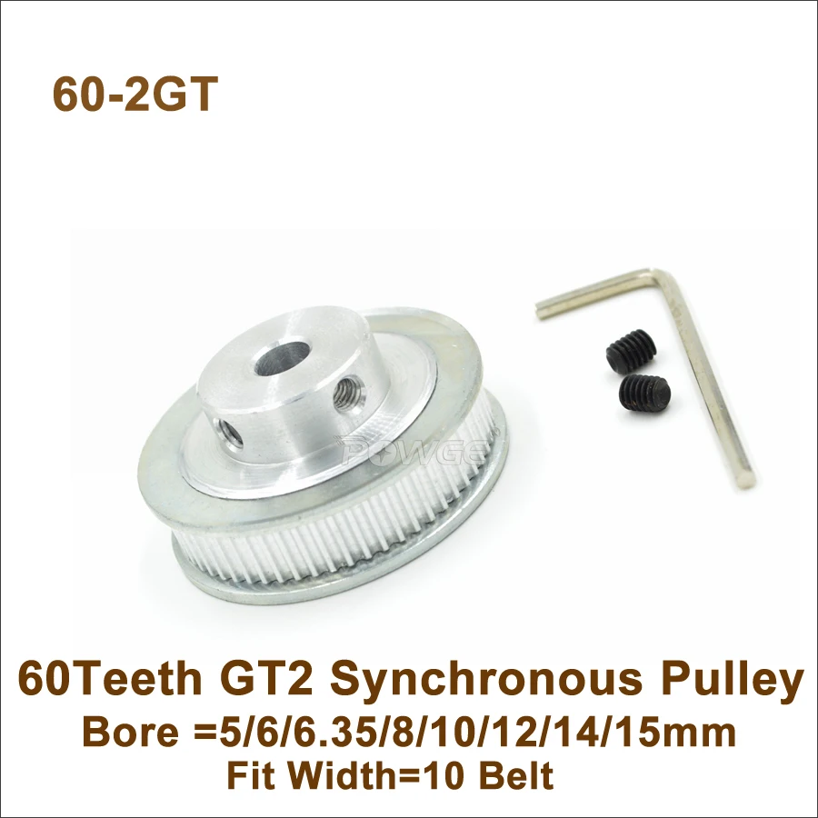 1 шт. алюминий60 зубцов 2GTШкив ГРМДиаметр отверстия 5/6/6. 35/8/10/12/14/15 мм Подходит дляШирина 10 ммGT2 открытый ремень для 3D принтера