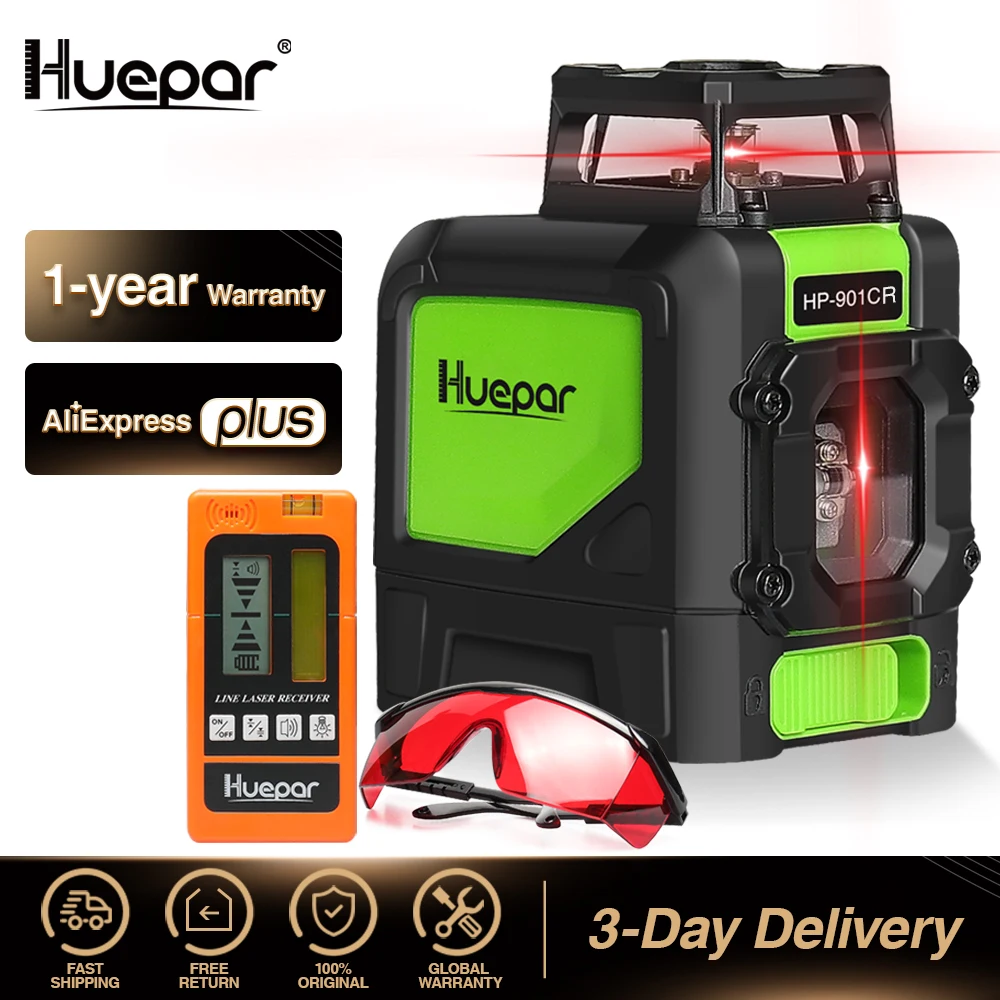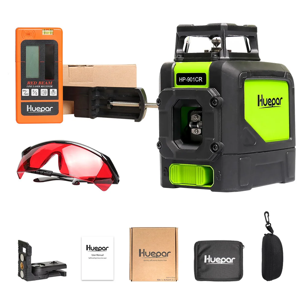 Нивелир лазерный Huepar, 5 линий, вращение на 360 градусов, с цифровым лазерным детектором и очками
