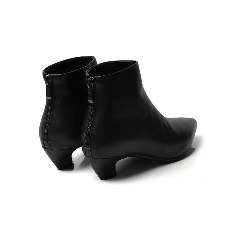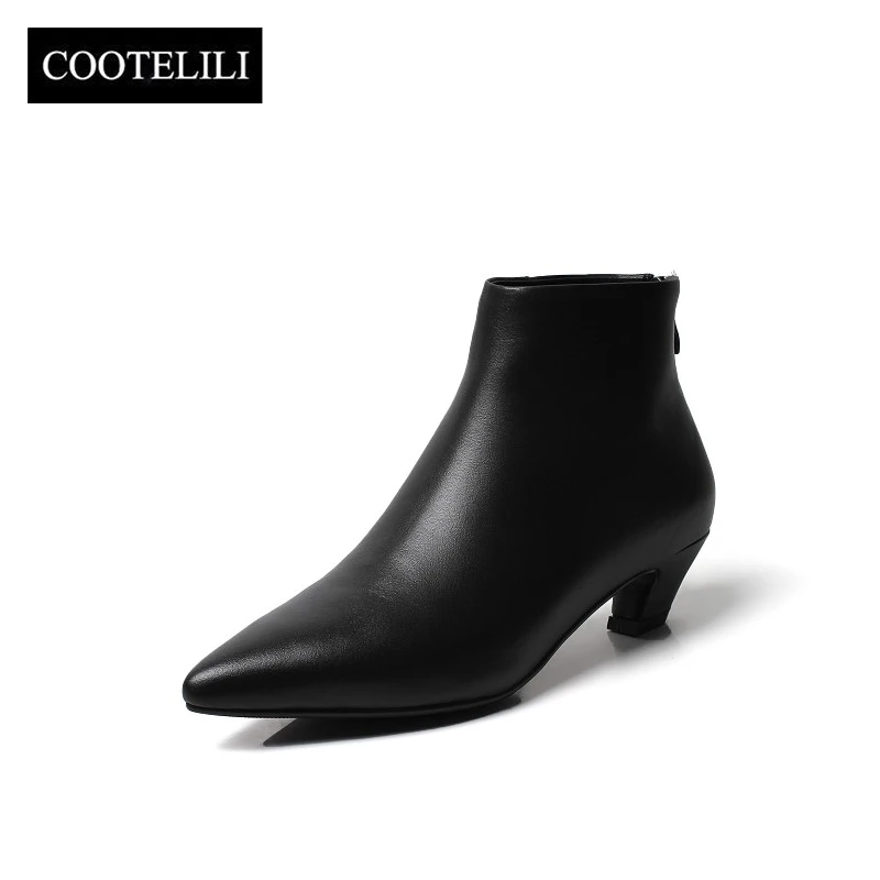 Ботильоны COOTELILI женские на каблуке, повседневная обувь, мягкие кожаные ботинки черного цвета, мотоботы с острым носком, Botas Mujer