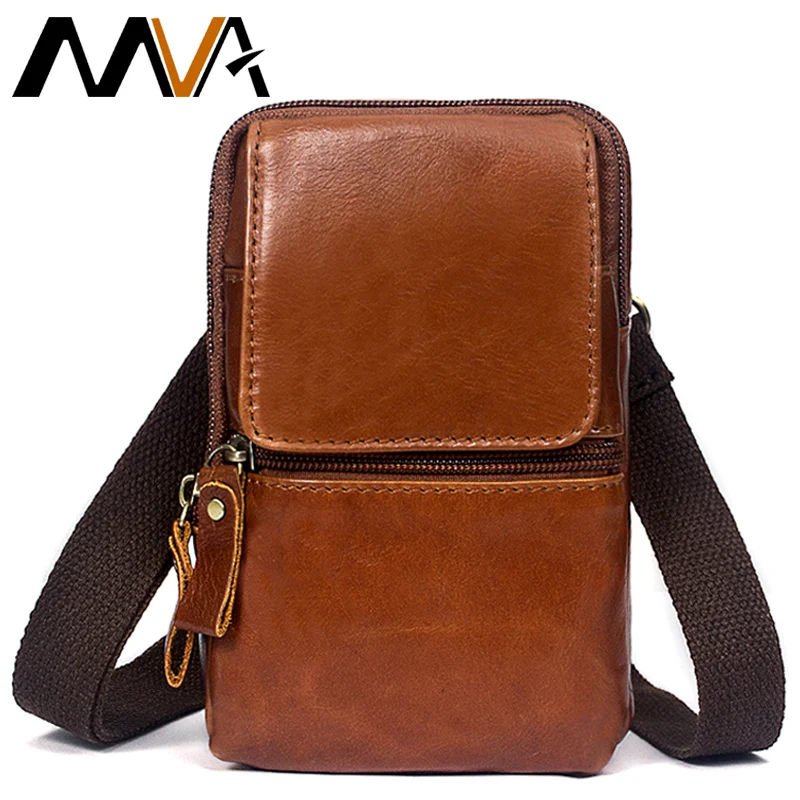 MVA кожаная сумка Для мужчин из натуральной кожи с плечевым ремнем из натуральной кожи сумки для Для мужчин Курьерские сумки Мужская маленькая сумка-пояс на Молнии Поясная Сумка