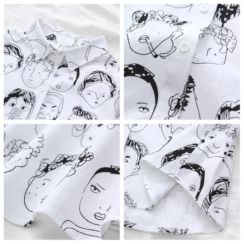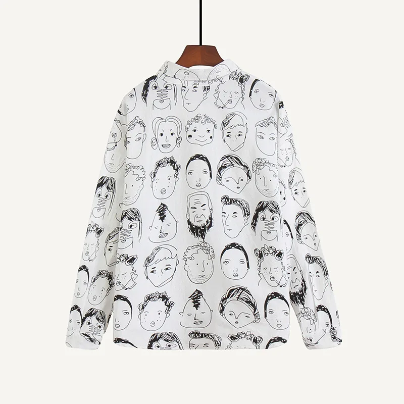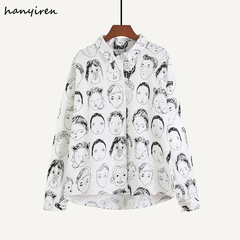 Hanyiren, женские блузки в стиле граффити, повседневные рубашки, белая однотонная модная блузка с длинным рукавом и принтом персонажа, уличная одежда, рубашка в стиле хип-хоп