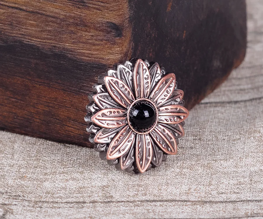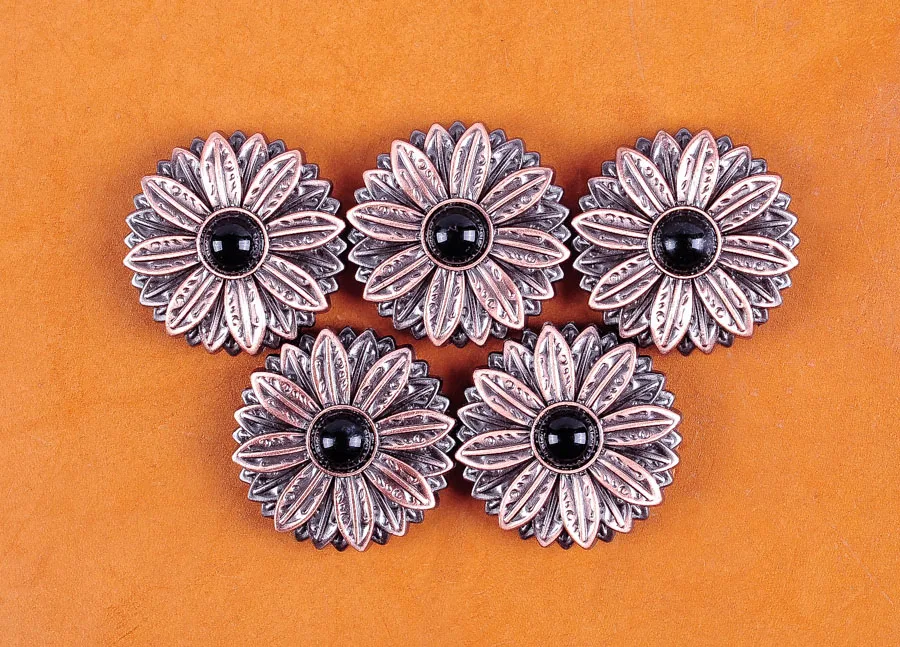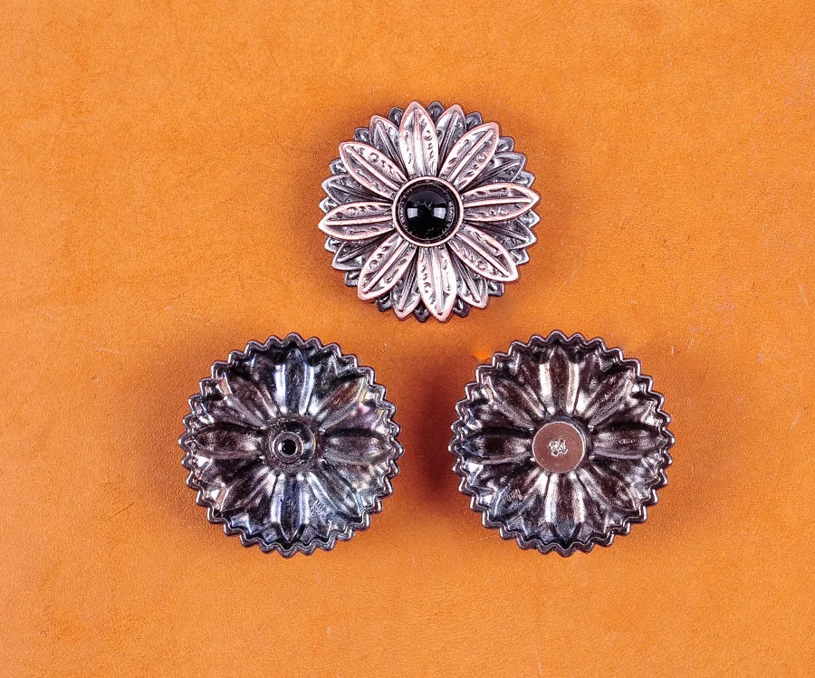 Цветок Кончо 30*30 мм 10 шт., с черным турбиновым центром, антикварная медная отвертка