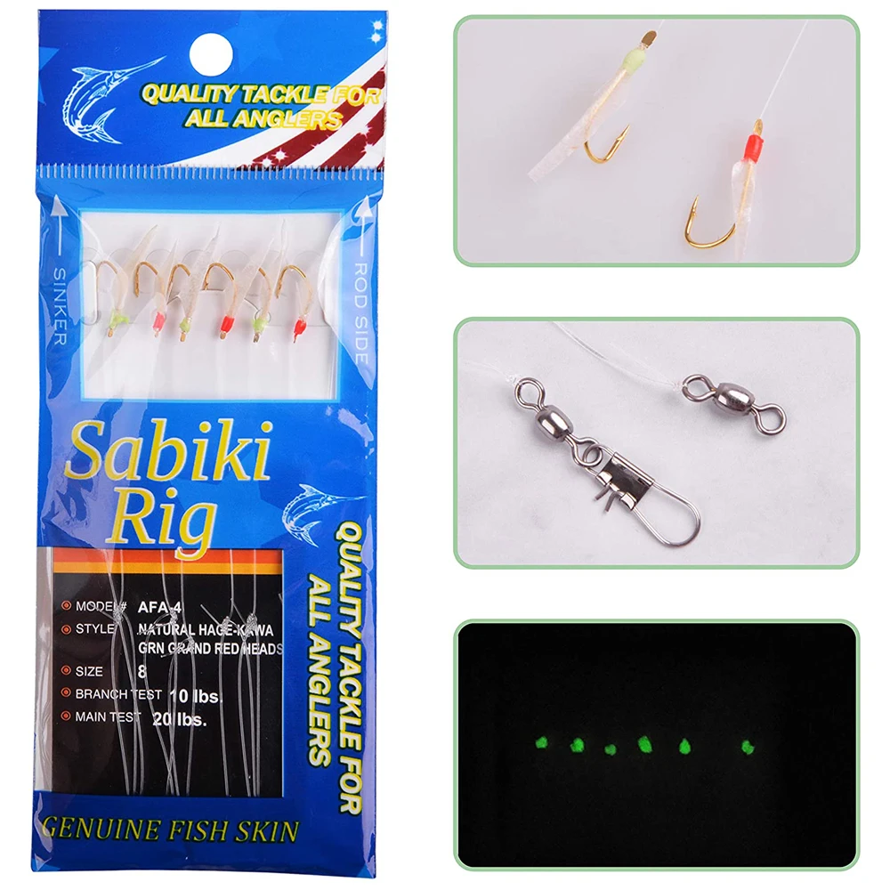 120 шт. = 20 упаковок, рыболовные снасти для Сабики, приманки, светящиеся бусины, веревочный крючок, натуральная рыбья кожа, форель, судак, морская, морская рыболовная приманка