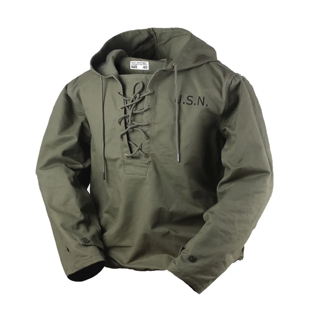 Парка USN Мужская для влажной погоды, винтажный пуловер со шнуровкой, униформа WW2, военно-морская куртка с капюшоном, верхняя одежда армейского зеленого цвета