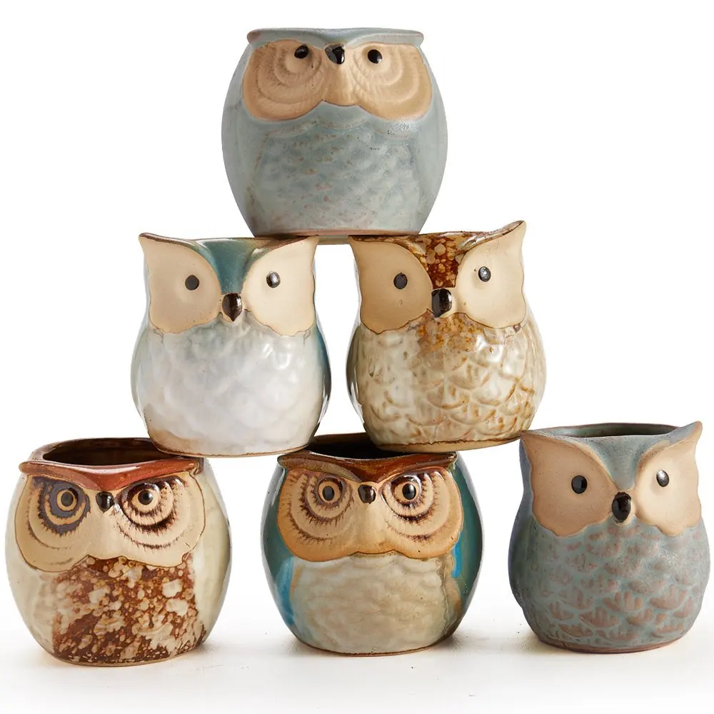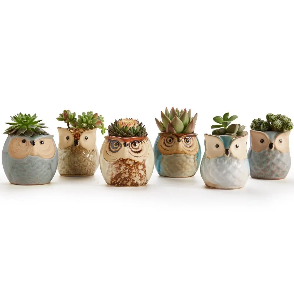 6 шт.лот Керамика Сова горшок цветочный горшок течет глазурью база последовательный набор сочные кактус завод контейнер кашпо Горшки Бонсай