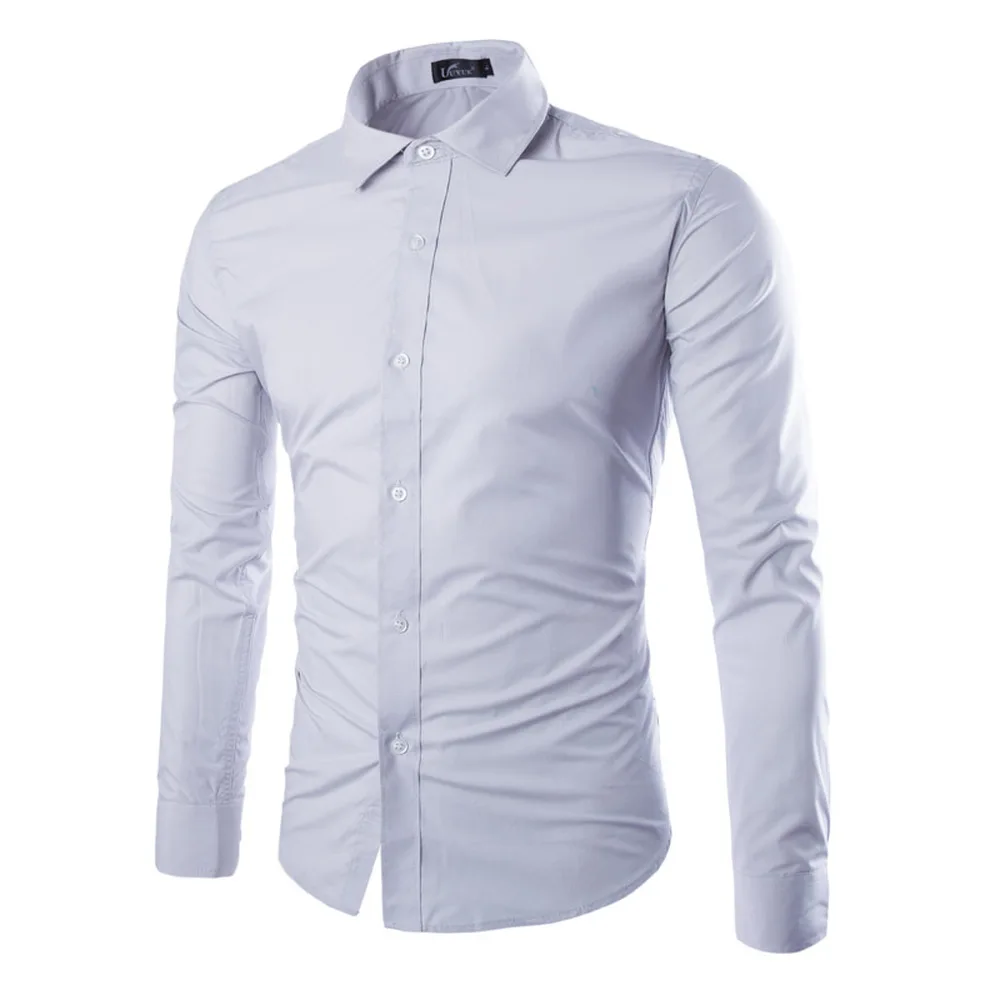 Новинка, мужские деловые рубашки с длинным рукавом, одноцветные Формальные Рубашки, Модные приталенные мужские повседневные платья, 17 ярких цветов, одежда