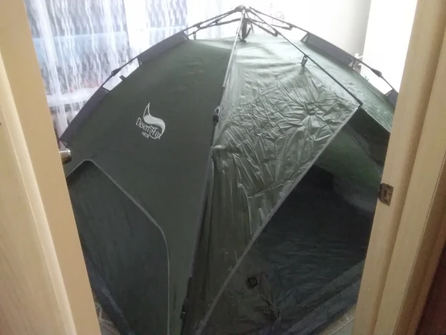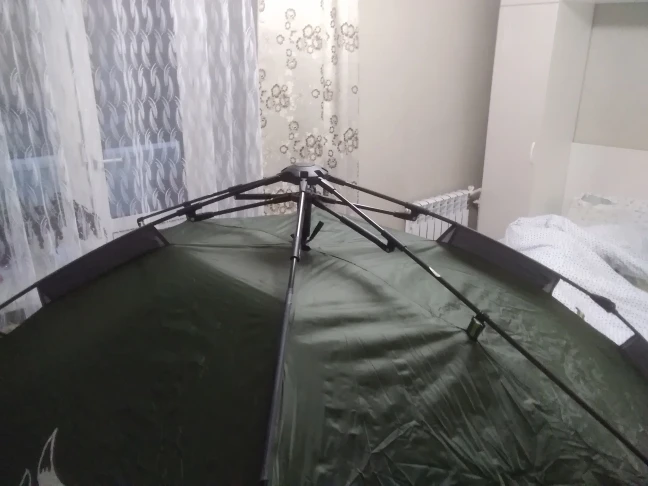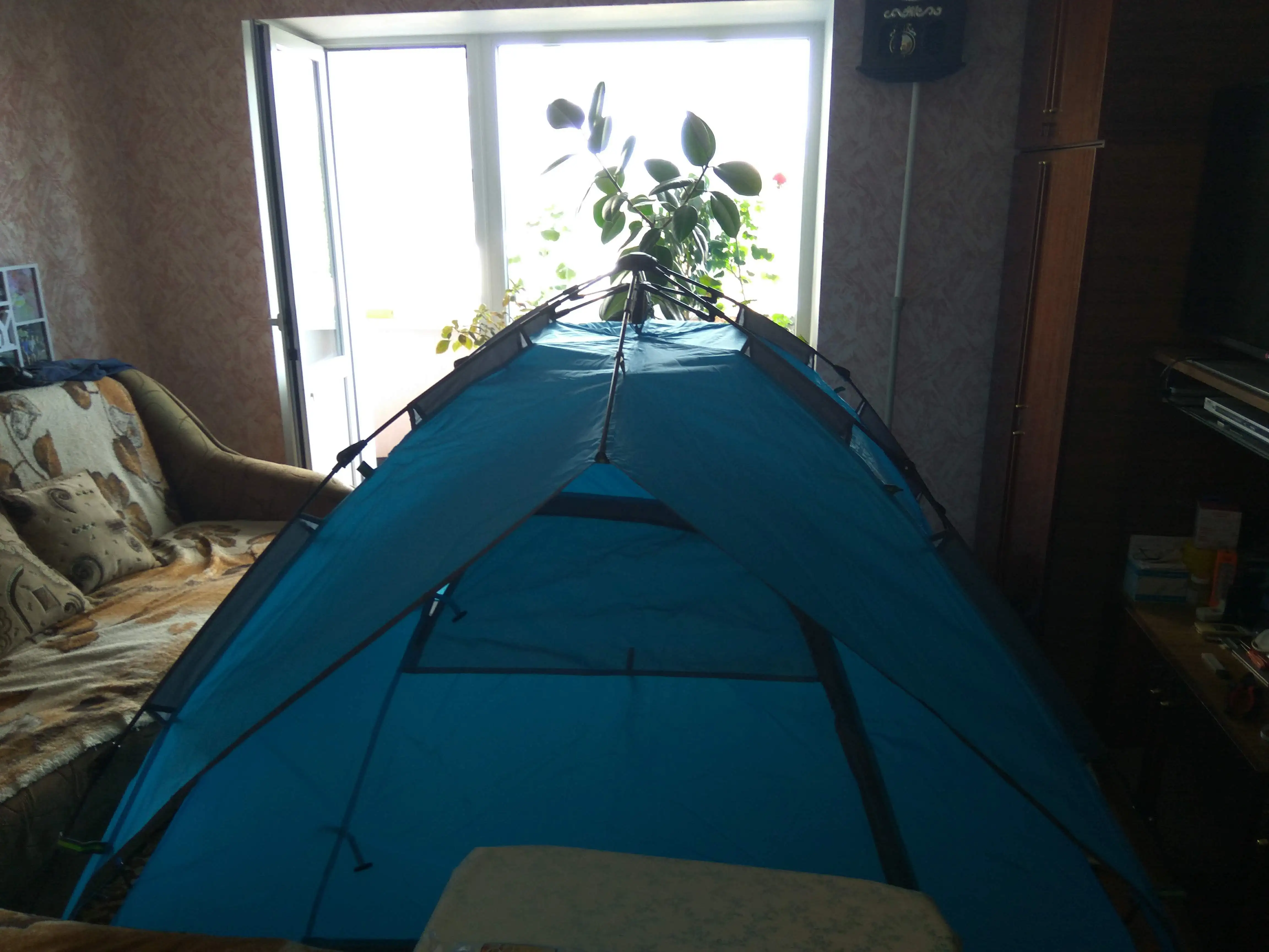 палатка пришла вовремя, всё целое не сломано пластик и крепления без трещин и надломов, замки на месте рабочие, внутренний размер немного завышен, надувной матрас 170*190 войдёт в притык на два человека хватит за глаза,как по мне материал тонковат, вернее хотелось бы по плотнее ну да время покажет.всем удачных покупок и не забудьте про кешбек !