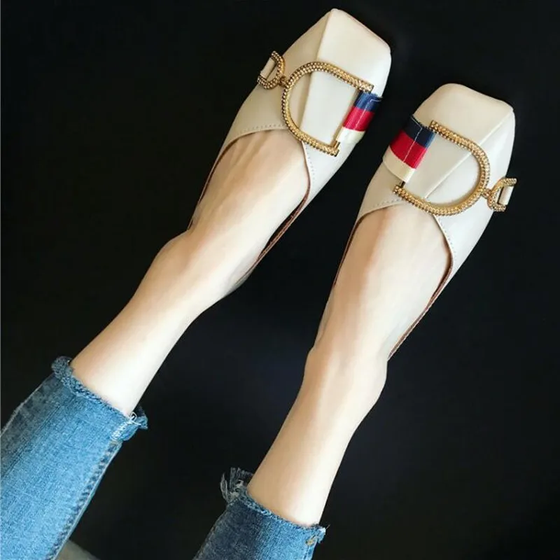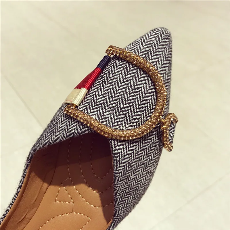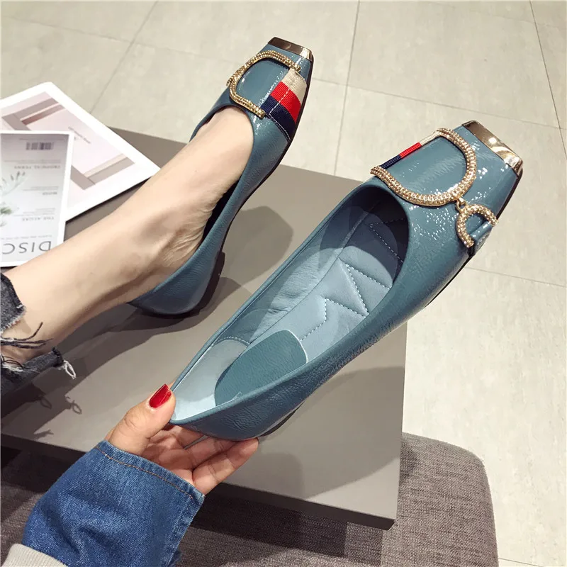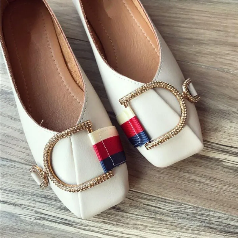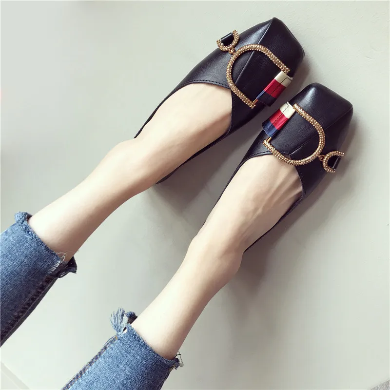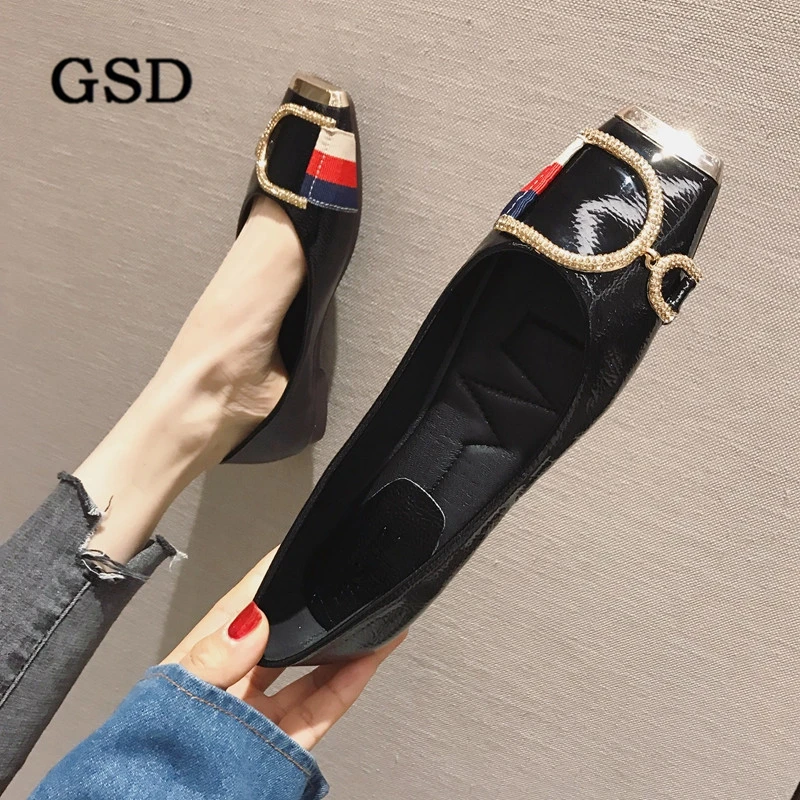 Женская мягкая обувь на плоской подошве, со стразами, большие размеры 35-42, весна-осень, Неглубокий квадратный носок