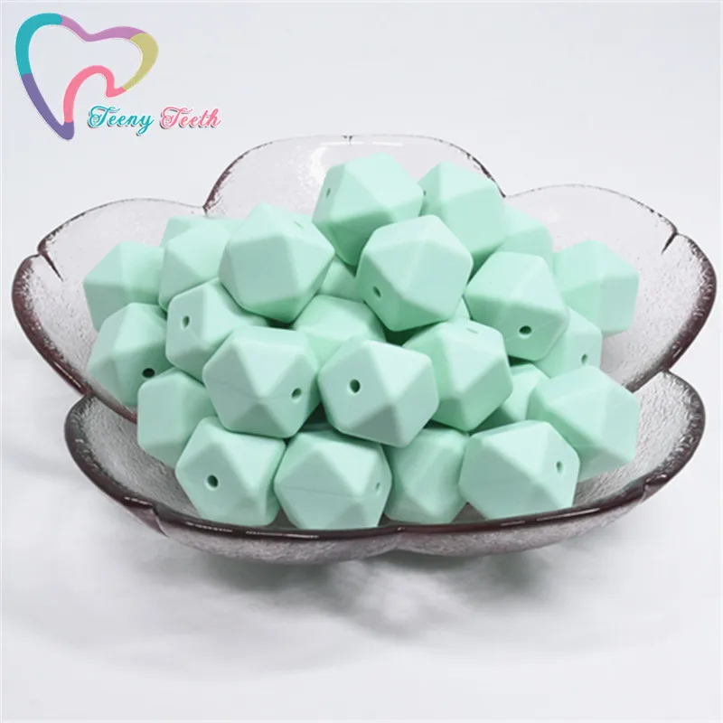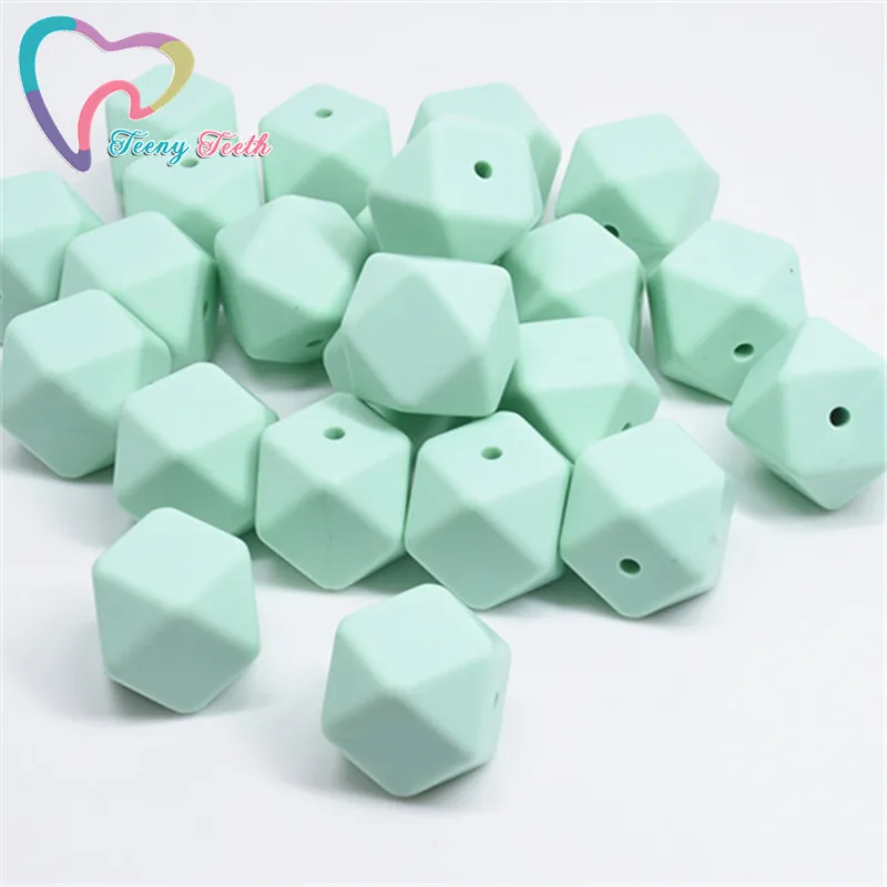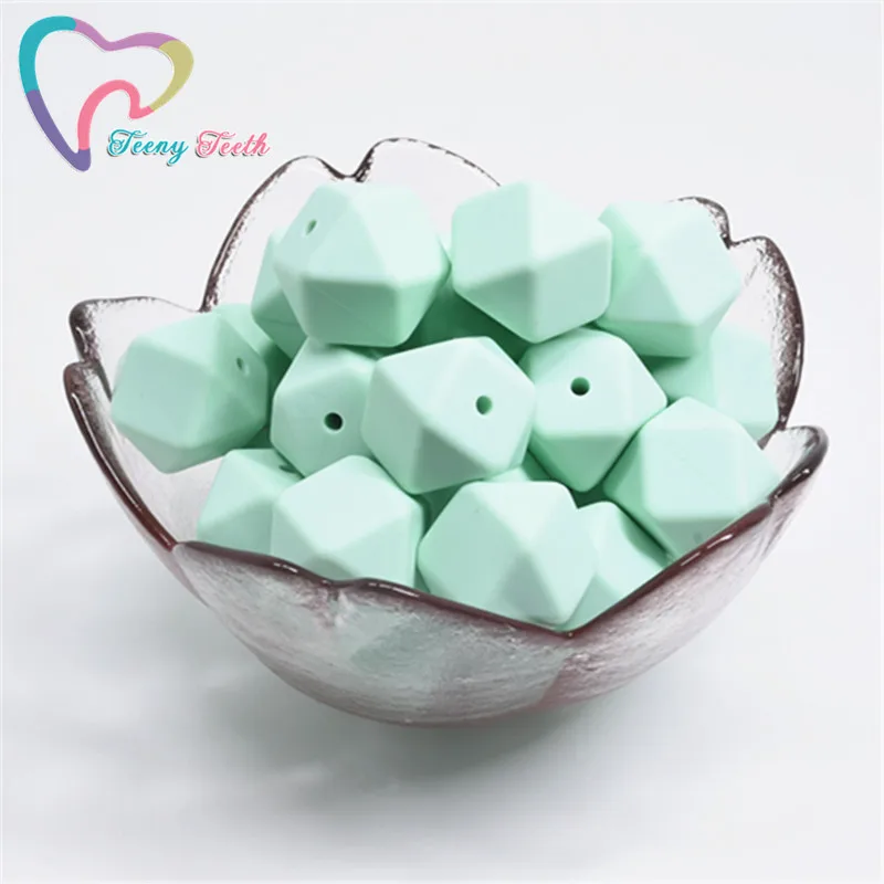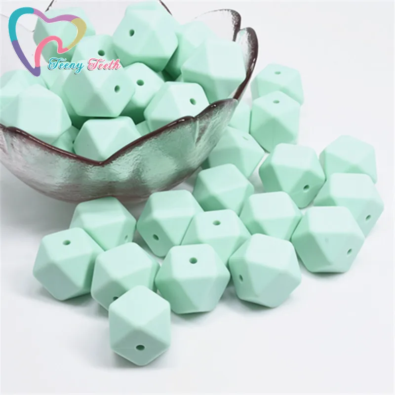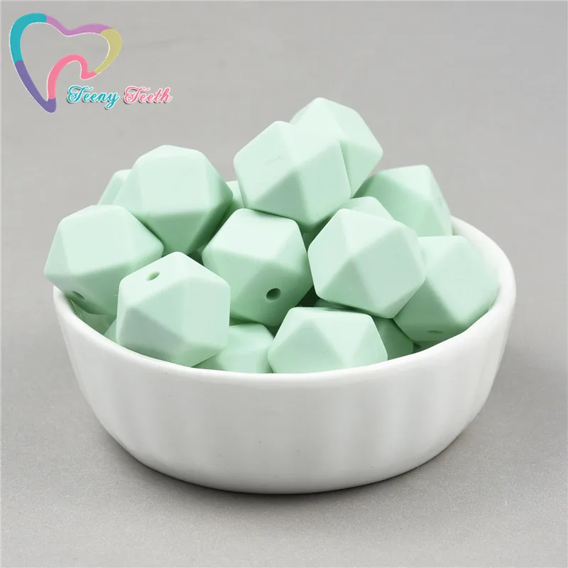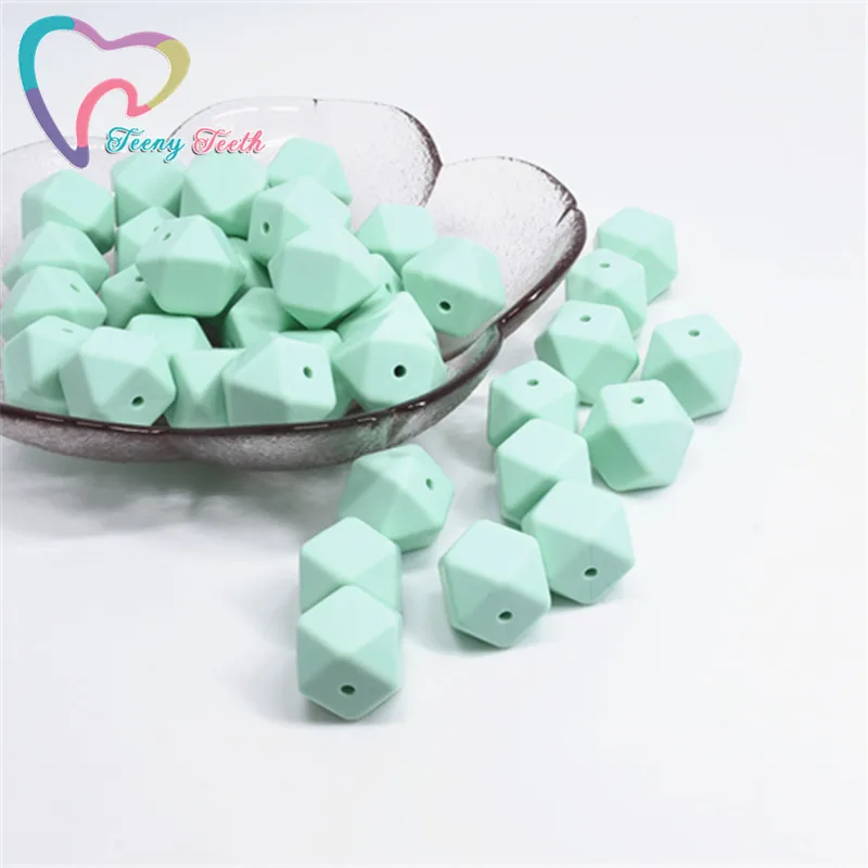10 шт., шестигранные силиконовые бусины мятного цвета 14-17 мм, пищевая детская прорезыватель, жевательные шестигранные свободные бусины для DIY, цепочка для сосков, детская игрушка