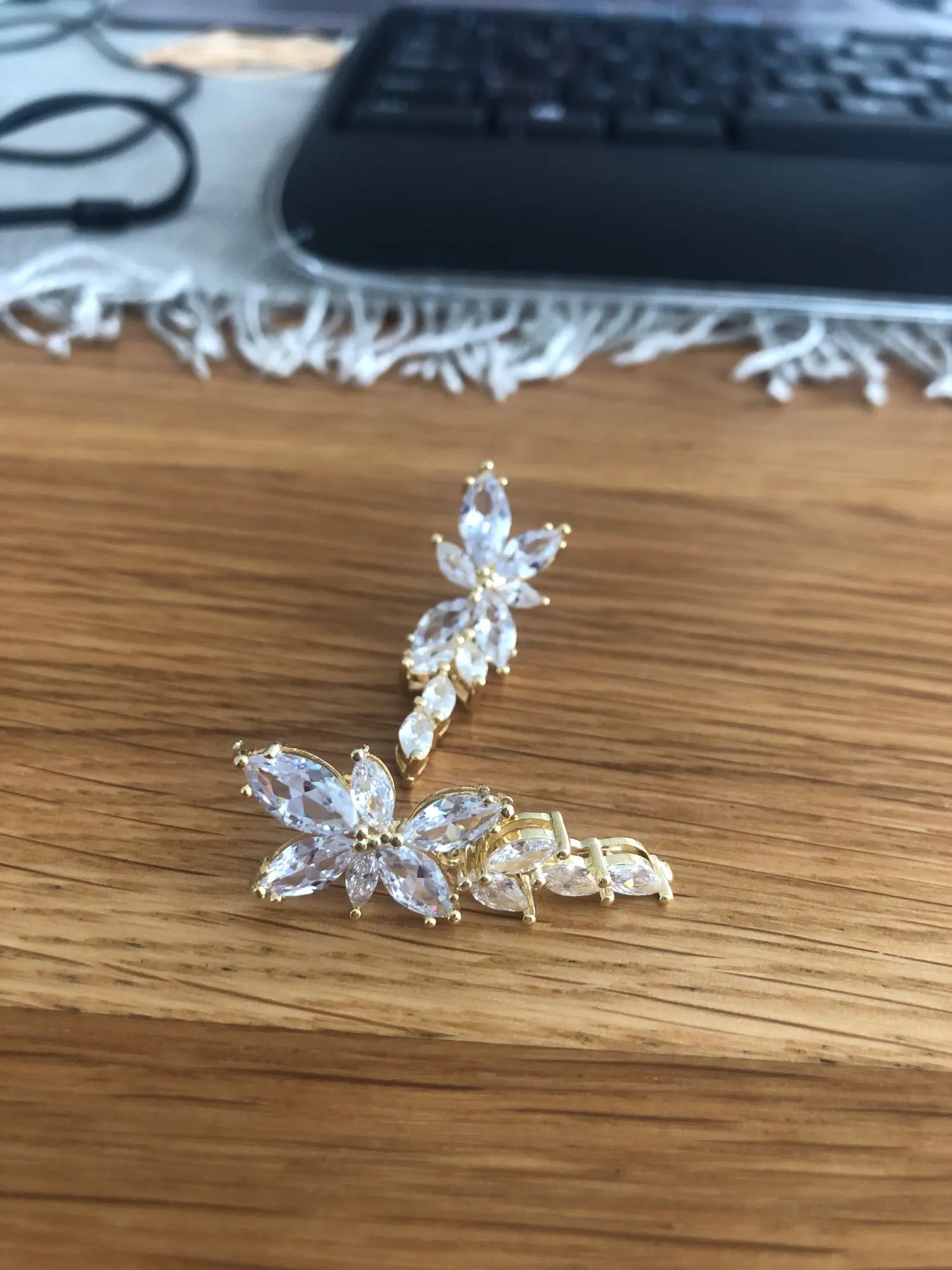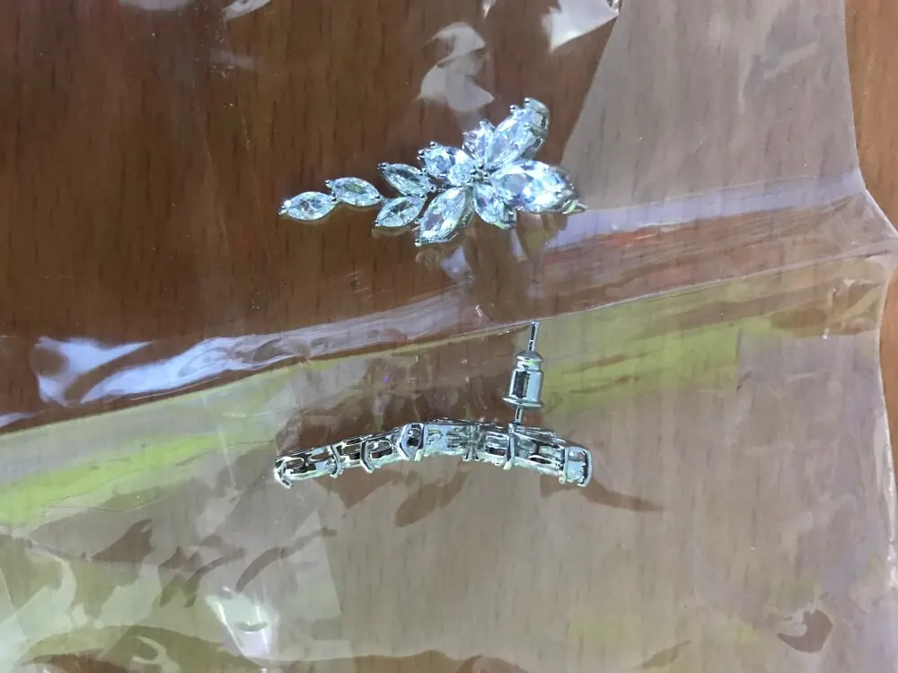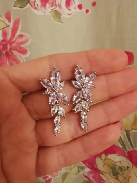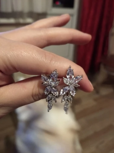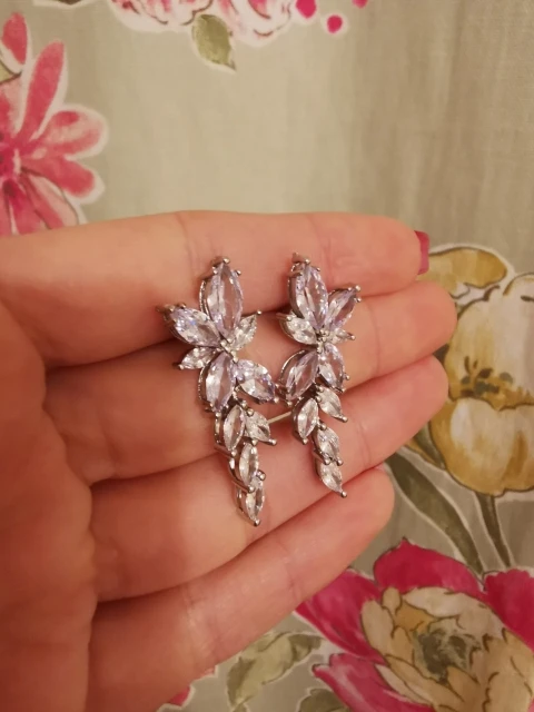 серьги красивые , очень сверкают,нижнюю часть можно снять ,без неё тоже хорошо смотрятся,все на месте ,качество отличное,выглядят супер рекомендую. Продавцу большое спасибо за быструю отгрузку, посылка пришла в Ростов-на-Дону за неделю
