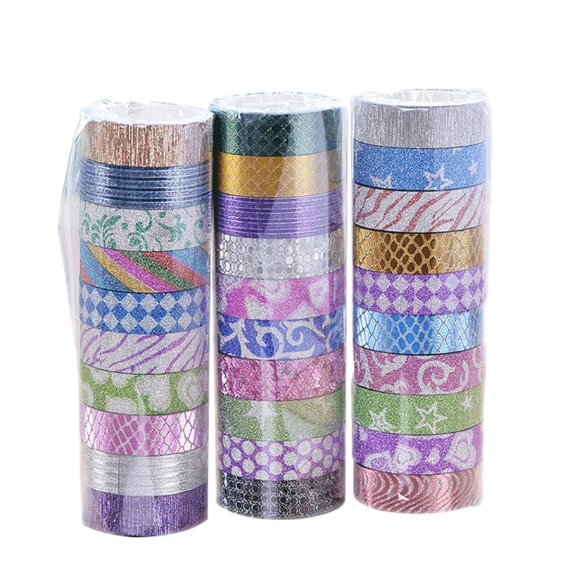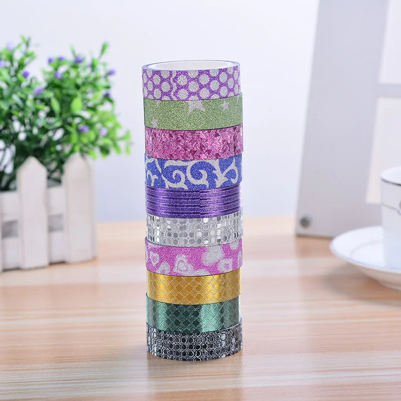 Декоративные ленты для скрапбукинга Kawai Adesiva, 10 шт.партия, набор декоративного скотча Васи, блестящие, японские Канцтовары
