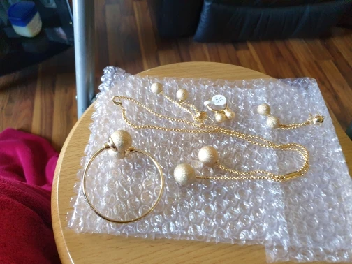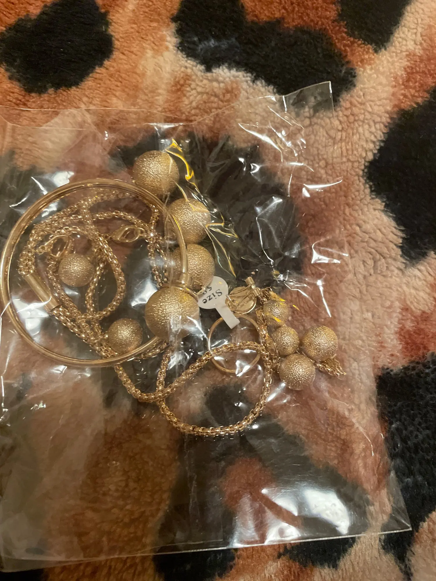 Комплект женских ювелирных украшений, колье, серьги, кольцо, золоты...