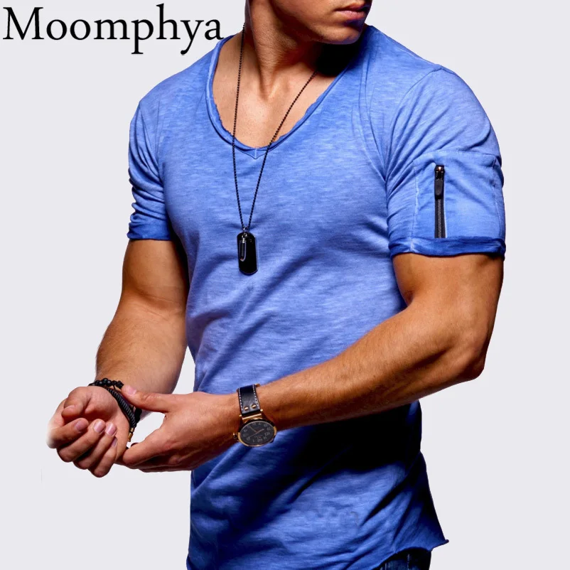 Футболка Moomphya мужская приталенная, тенниска на молнии, рубашка с коротким рукавом, майка в стиле хип-хоп, одежда для занятий спортом