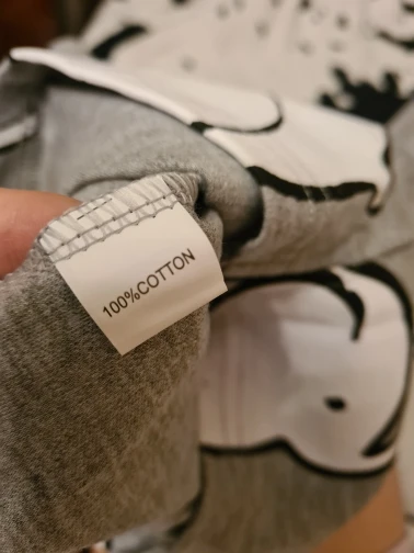 Синтетика. Но тот, что со слоном плотная ткань, грубая даже. Тот, что с молоком тоньше и приятнее на ощупь