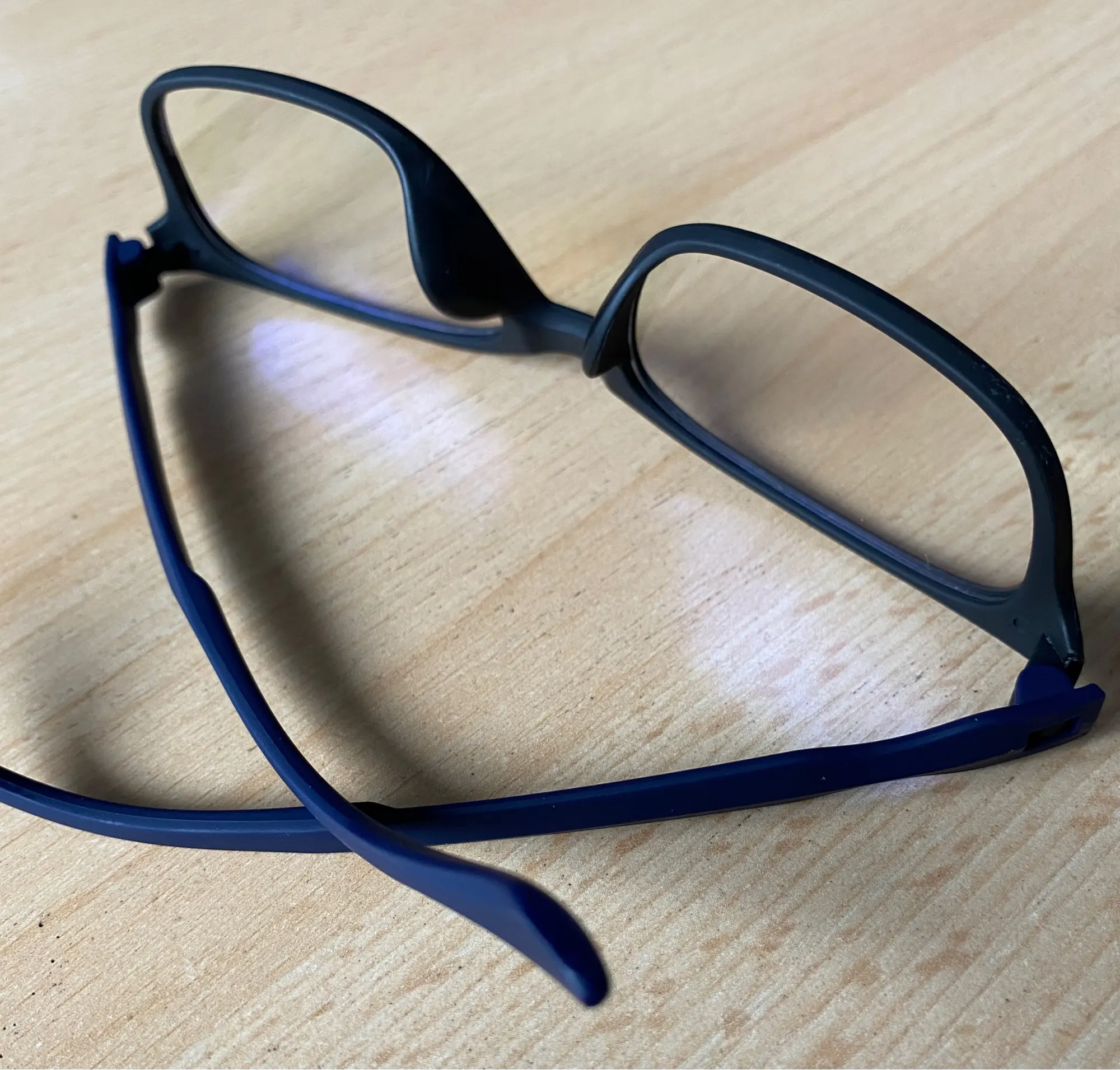 Отличнейшие очки. Стекла выглядят прозрачными, на дужках голубой отлив тоже еле еле заметен, не как на фото.