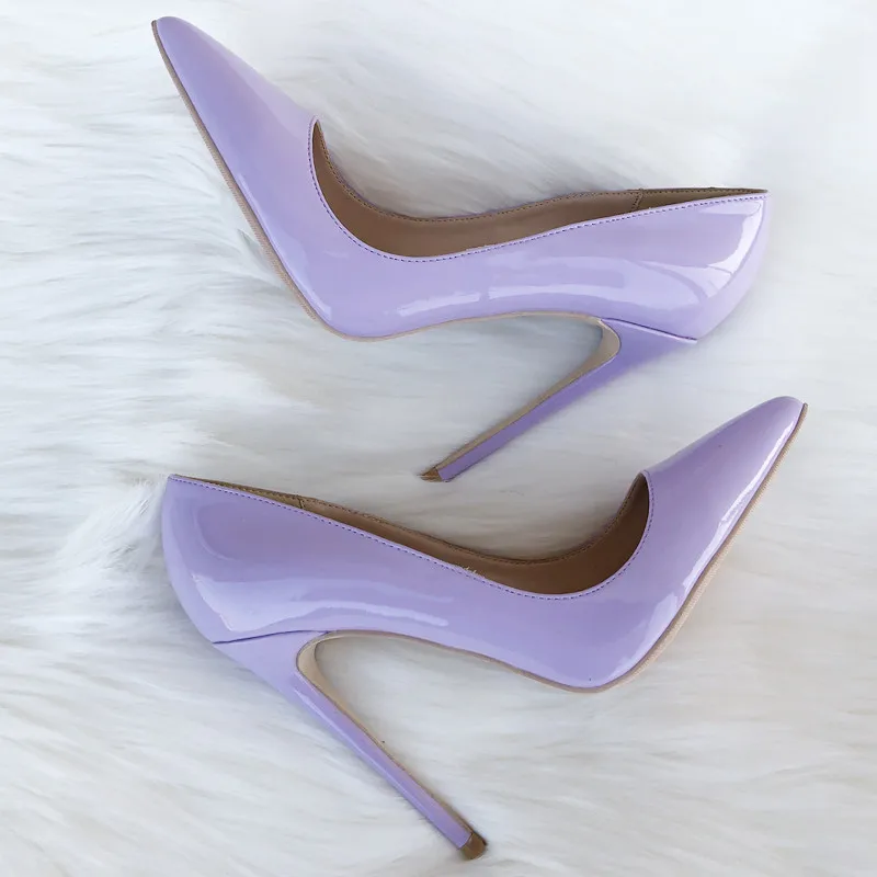 Женские туфли-лодочки; Светло-фиолетовая женская обувь из лакированной кожи с острым носком; Туфли для вечеринки на высоком каблуке 12 см; QP017 ROVICIYA