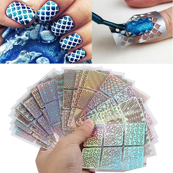 Swagpick 24 шт лазерные полые наклейки-трафарет винил для ногтей Переводные советы Руководство Шаблон Сердце Звезда Рыба Дизайн Стикер для ногтей