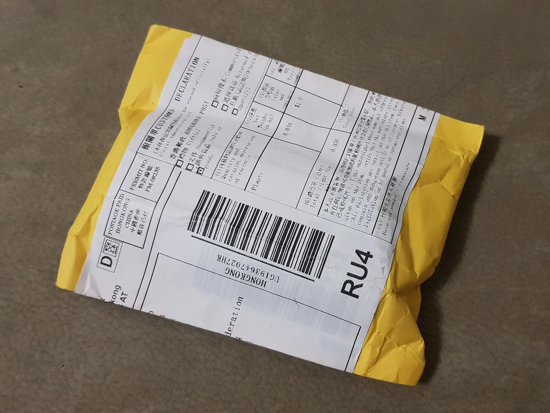 Страна: RU Доставка: Cainiao Super Economy 27.02.2021
