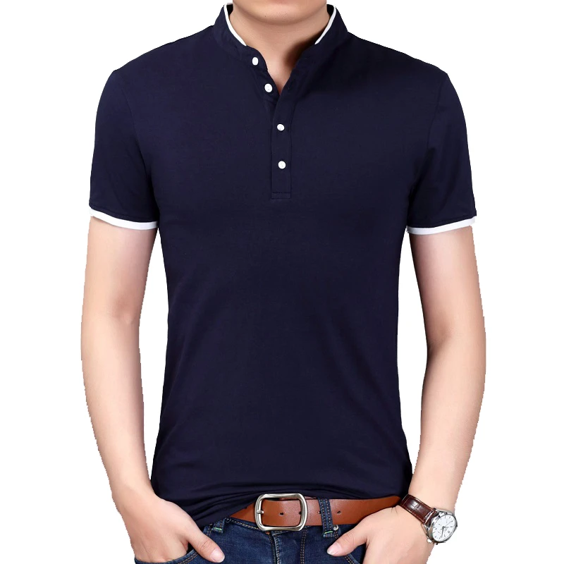 Мужская футболка с коротким рукавом BROWON, Повседневная футболка с воротником мандарин, Новое поступление 2022