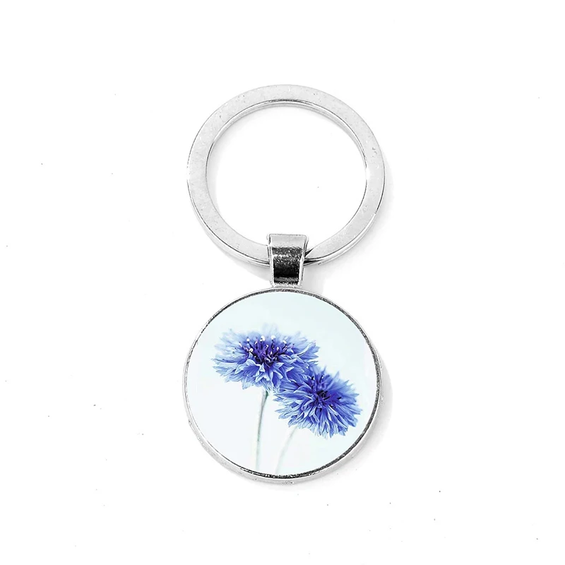 Синяя гвоздика, брелок, цветок, васильковый цветок, фото, стекло, кабошон, автомобильная сумка, брелок-держатель, подвески для женщин, подарок, модные аксессуары