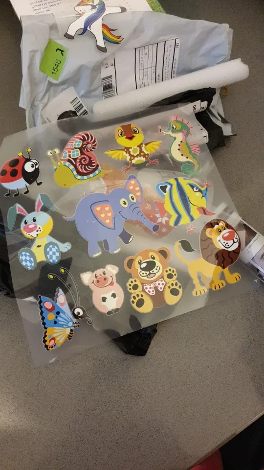 Хорошо упаковано в рулон пены. Материал довольно плоский после распаковки. Красивые цветные фотографии. Легко держать, чтобы отрезать (достаточно просто пустой место на фотографии) и на одежде гладить. Красивая гладкая картинка после глажки на одежде.