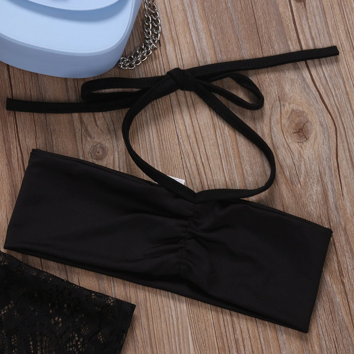 Купальник-бикини для маленьких девочек, комплект из 3 предметов, кружевная одежда с цветами, От 1 до 6 лет