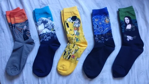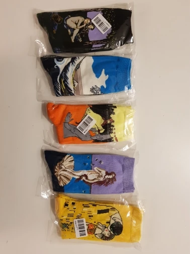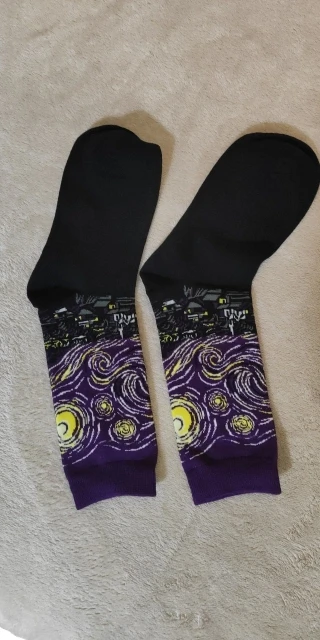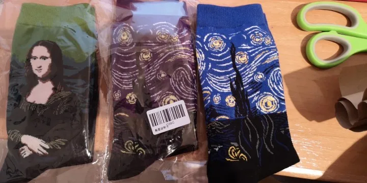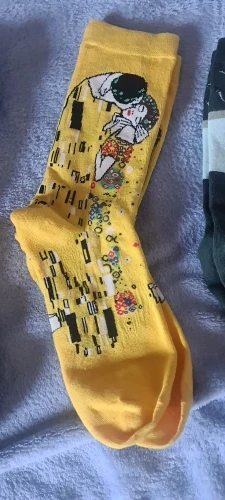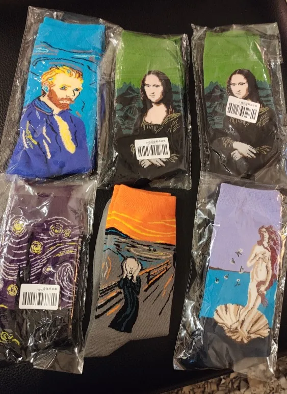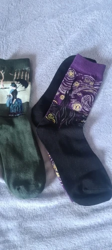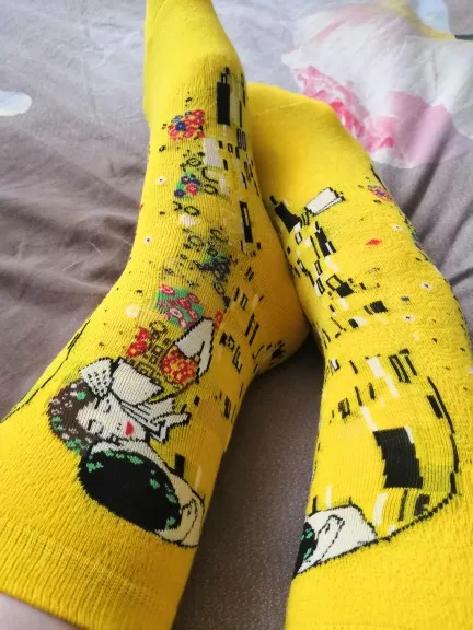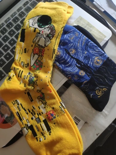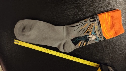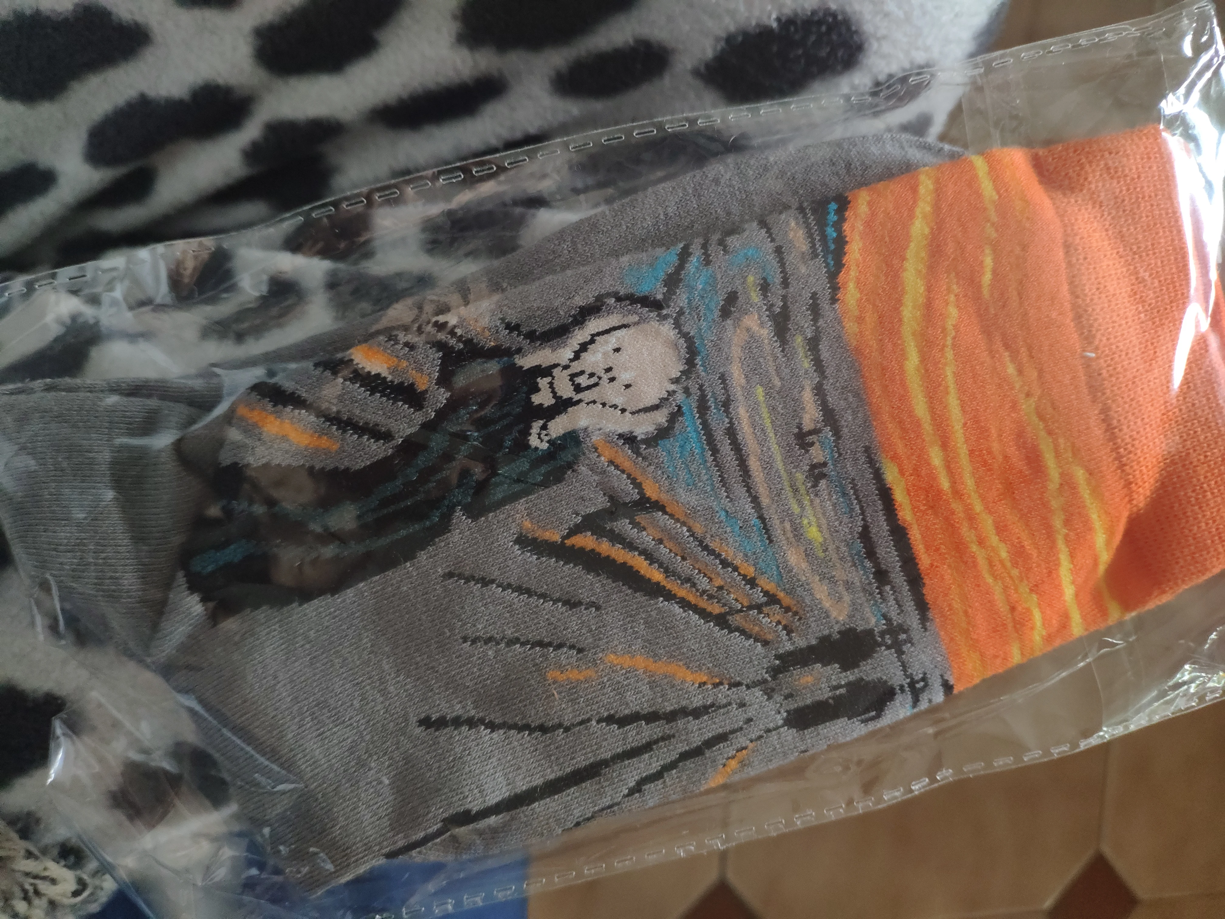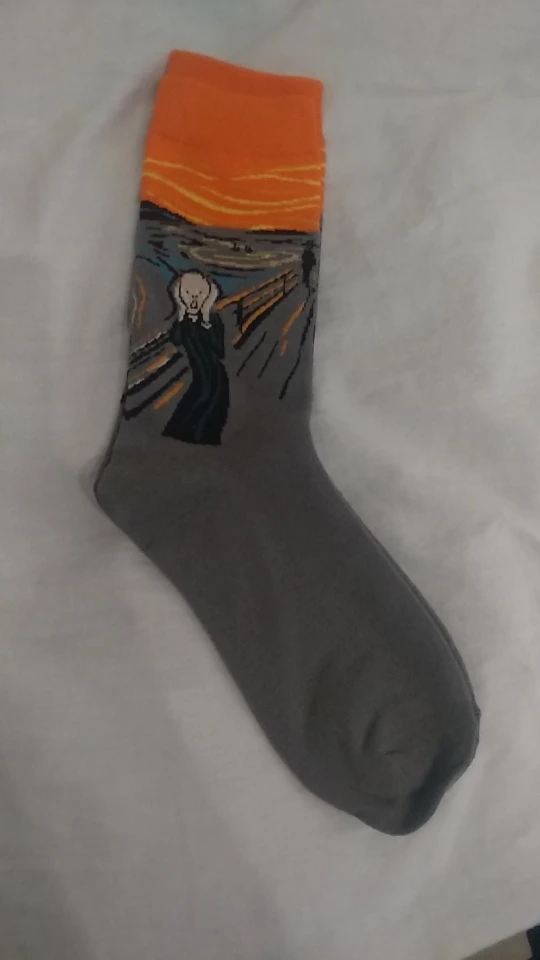 Отличные носочки, хорошее качество, красивые и четкие картинки!!! «Крик» вообще бесподобен)) Носки хорошо тянутся, не знаю, подойдут ли на 43, но на 40 точно хорошо садятся. В Москву доставлены за 10 дней. Спасибо продавцу, закажу ещё!