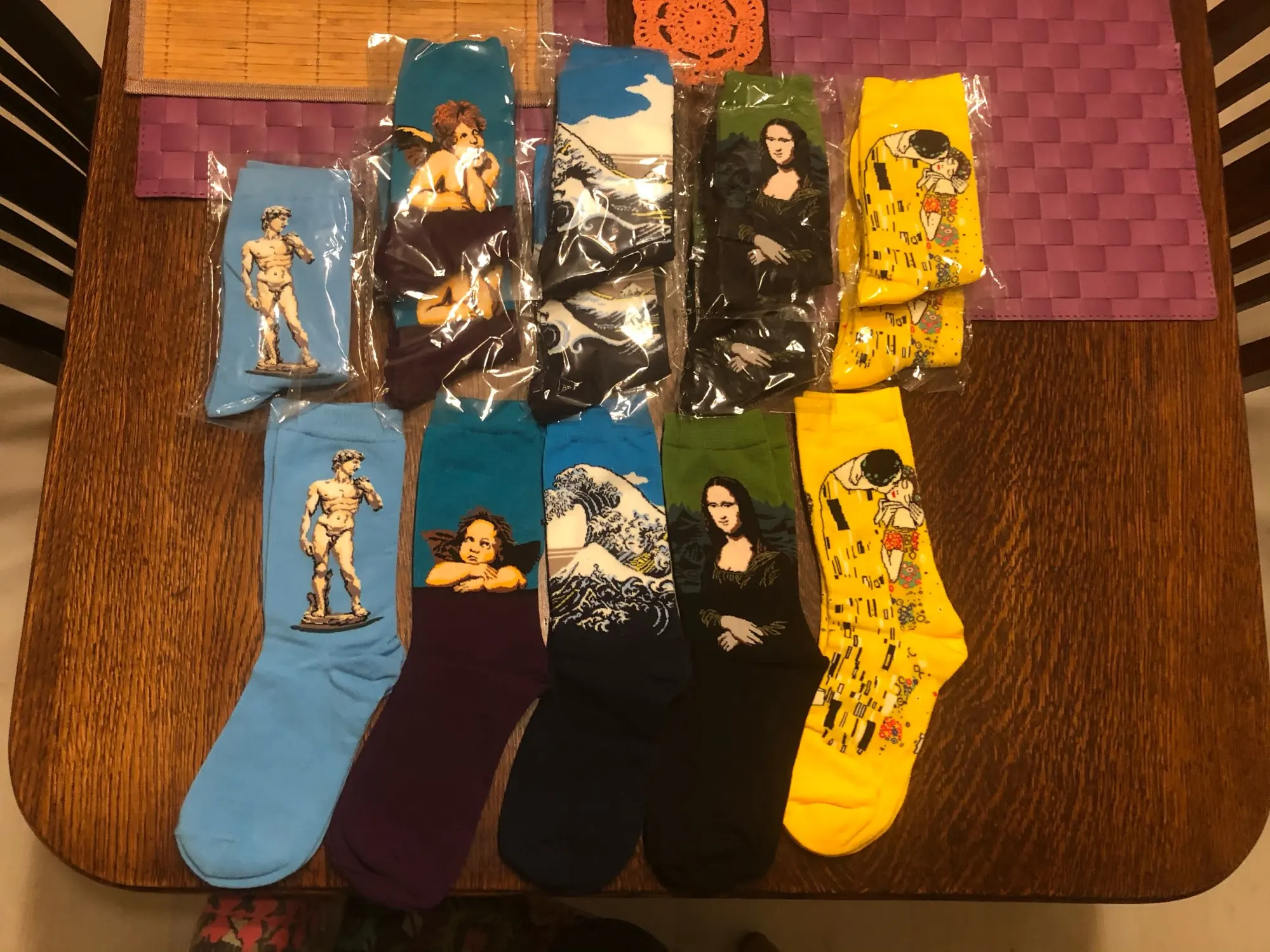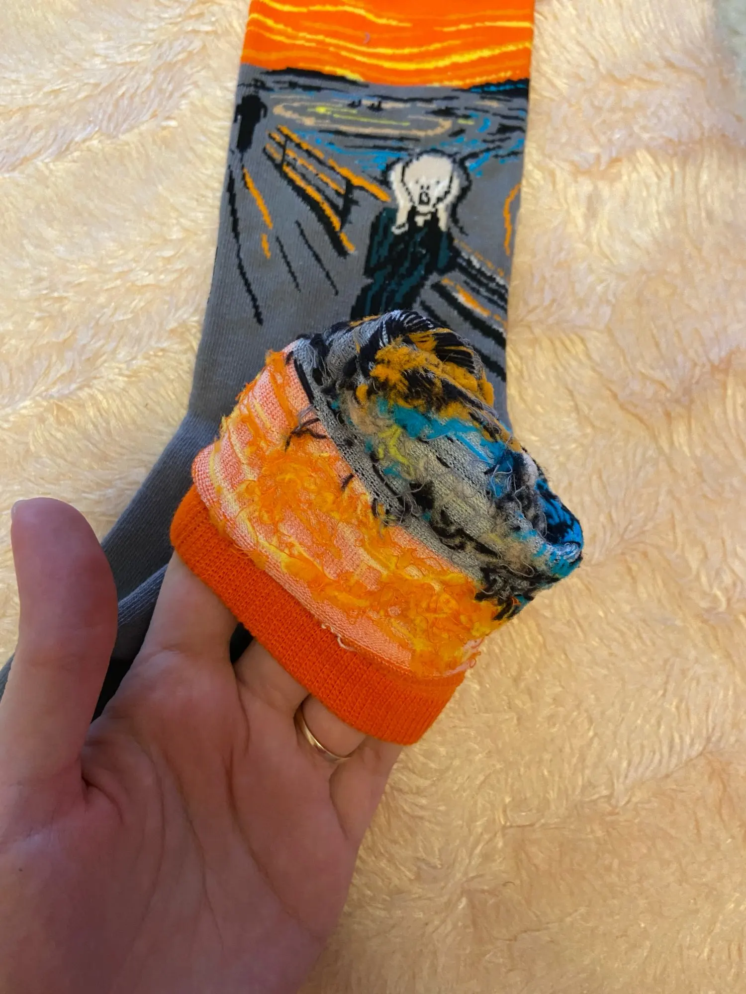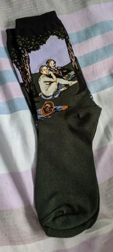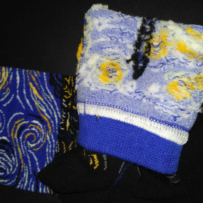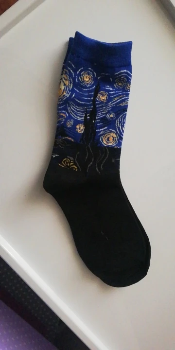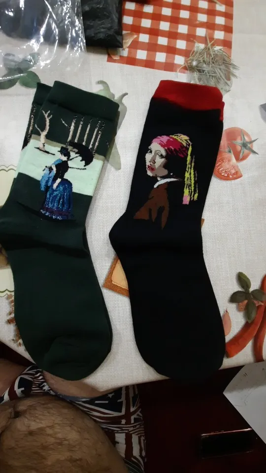Отличные носочки, хорошее качество, красивые и четкие картинки!!! «Крик» вообще бесподобен)) Носки хорошо тянутся, не знаю, подойдут ли на 43, но на 40 точно хорошо садятся. В Москву доставлены за 10 дней. Спасибо продавцу, закажу ещё!