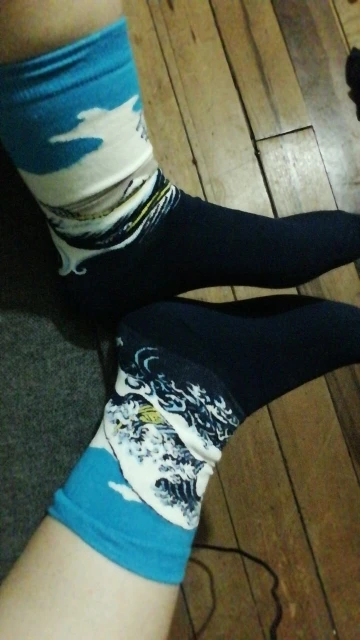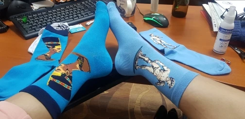носки очень классные! чёткий рисунок, хорошее плотное качество самих носков. муж в восторге)) очень чёткие рисунки. в общем рекомендую) спасибо за носочки. доставка была около месяца в пункт выдачи в Санкт-Петербург.