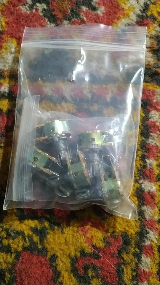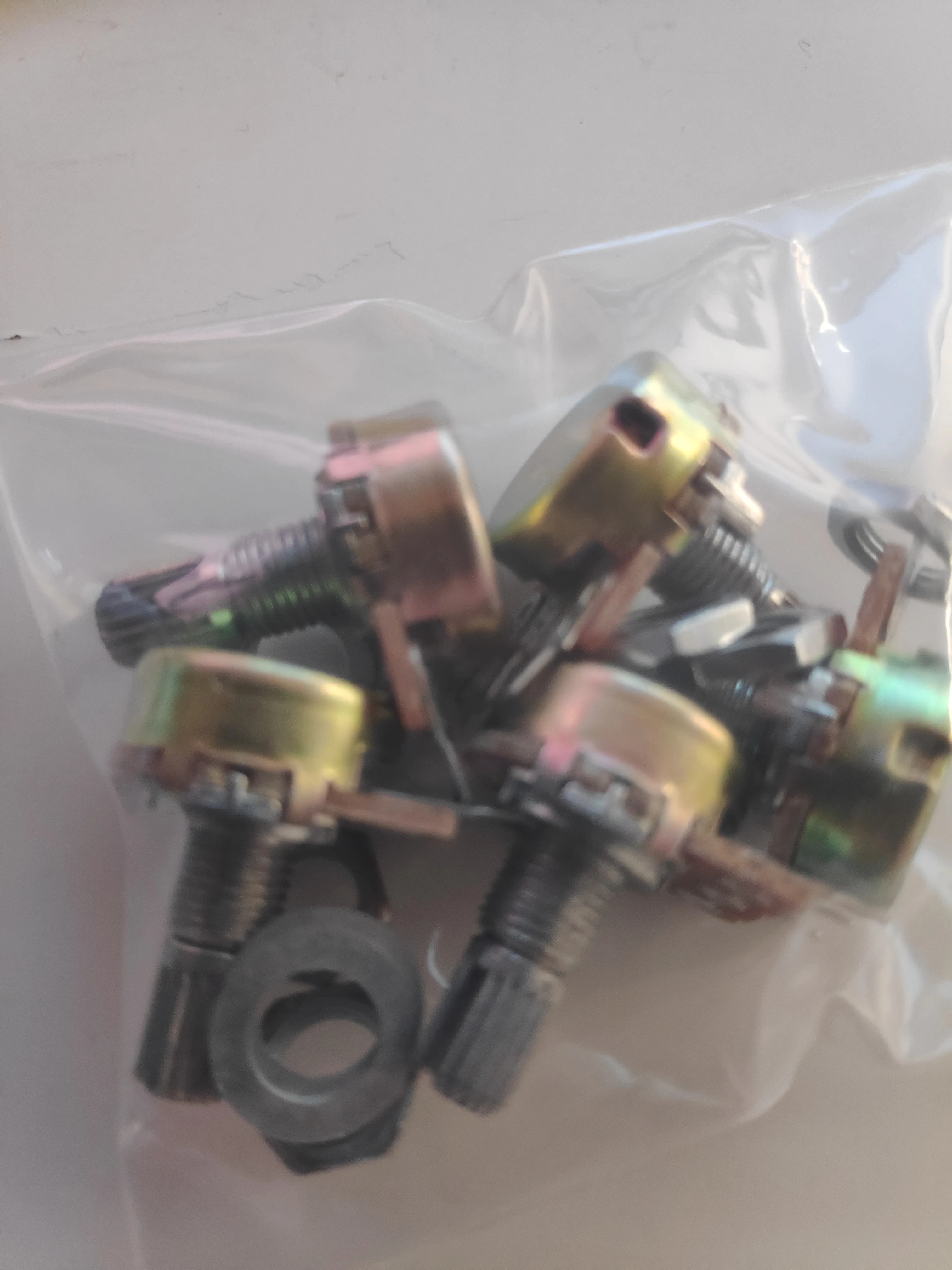 Идеальные потенциометры. Некоторые ноги слегка согнуты, но не влияют на функциональность. Цена была отличной. Я получил 5 штук по цене 1. Доставлен из Китая в Чехию Я рекомендую купить у этого продавца. Они также оставили свою контактную карту.