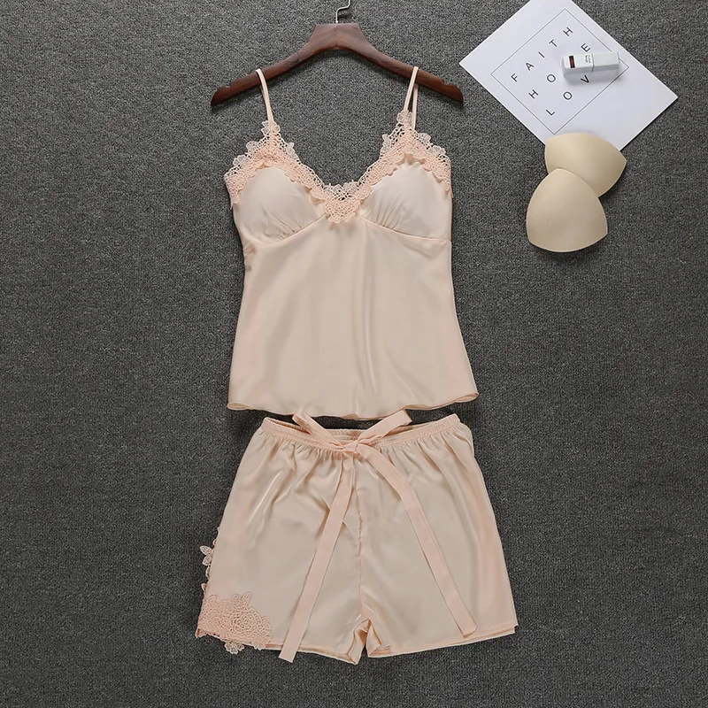 Женский Шелковый пижамный комплект Lisacmvpnel, с V-образным вырезом и подкладкой, сексуальная летняя женская пижама