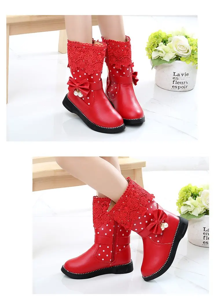 Сапоги JGSHOWKITO для девочек Теплые хлопковые детские модные сапоги Детская зимняя обувь для девочек снежные сапоги из искусственной кожи с кружевом и бантом милые