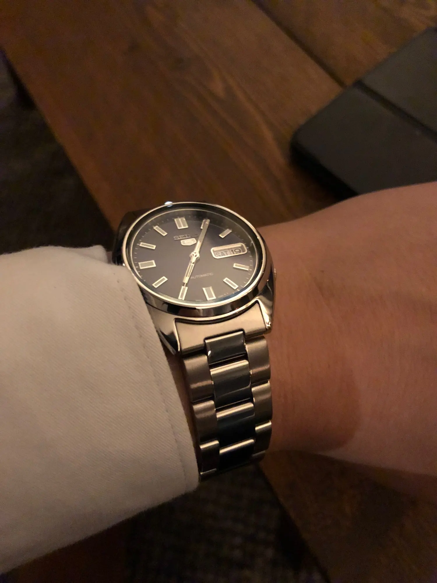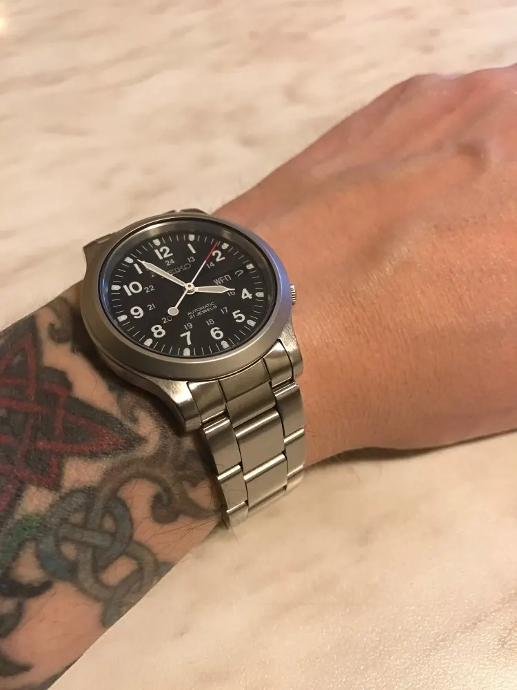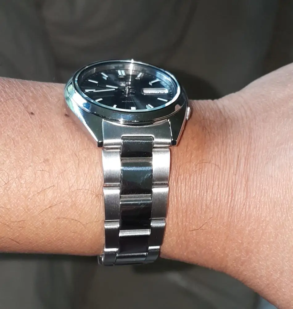 Твердый 19 мм ремешок oyster для my Seiko SNXS79. Поменял мою застежку Seiko, и она выглядит так же, как OEM. Должен был быть таким образом, чтобы начать с.