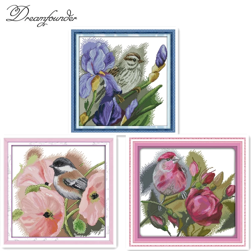 Набор для вышивки крестиком "птица с маками", розовый цветок, животное, 14ct, 11ct