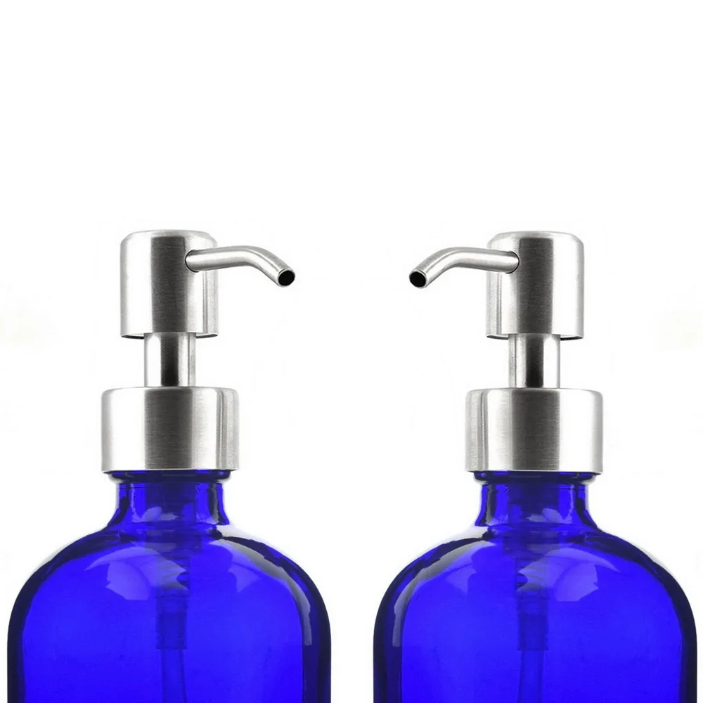 Супер набор из 2 прочных, многоразовых, 16 унций кобальтовых голубых стеклянных бутылок с ручными насосами из нержавеющей стали, красиво украсит любой дом, добавив визуальное притяжение на кухню, ванную столешницу или душ. Голубые кобальтовые бутылки отлично смотрятся везде, где они используются.