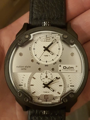 Часы Oulm Мужские, спортивные, большие, кварцевые, с кожаным ремешком, с двойным часовым поясом