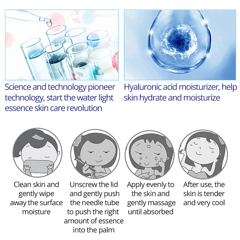 Задние фоны для воды типа светильник эссенция, содержит богатый Гиалуроновая кислота увлажняющих компонентов, пополнить кожу требуется; Отводят влагу и осветляет кожу, подарок